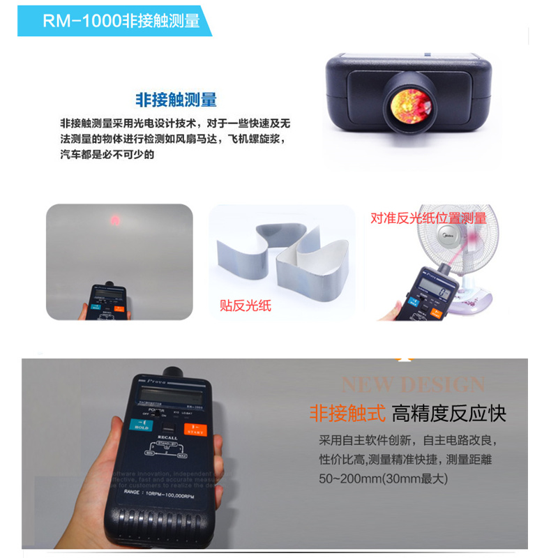 台湾泰仕RM-1000数显转速计RM1500激光非接触式转速测试仪RM1501