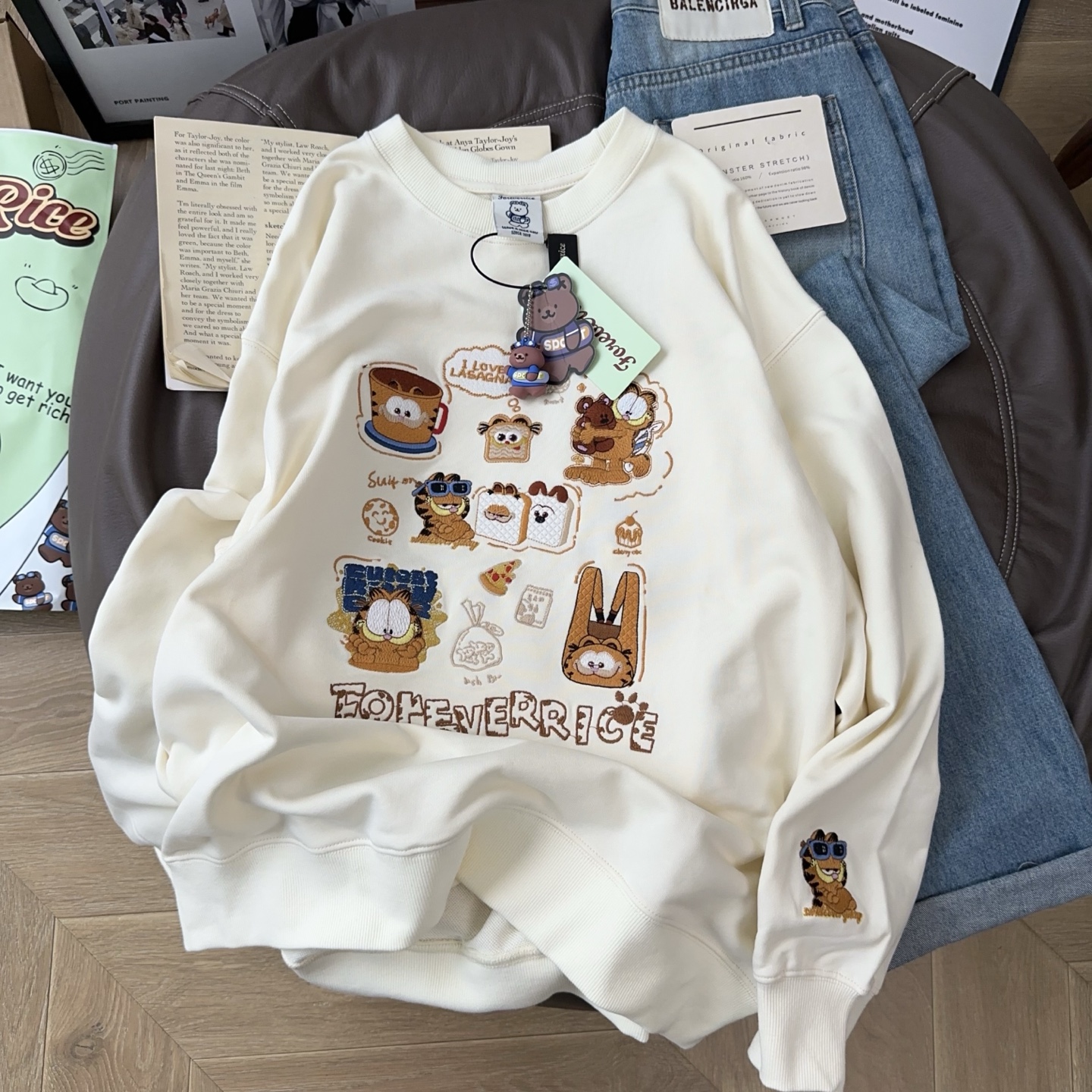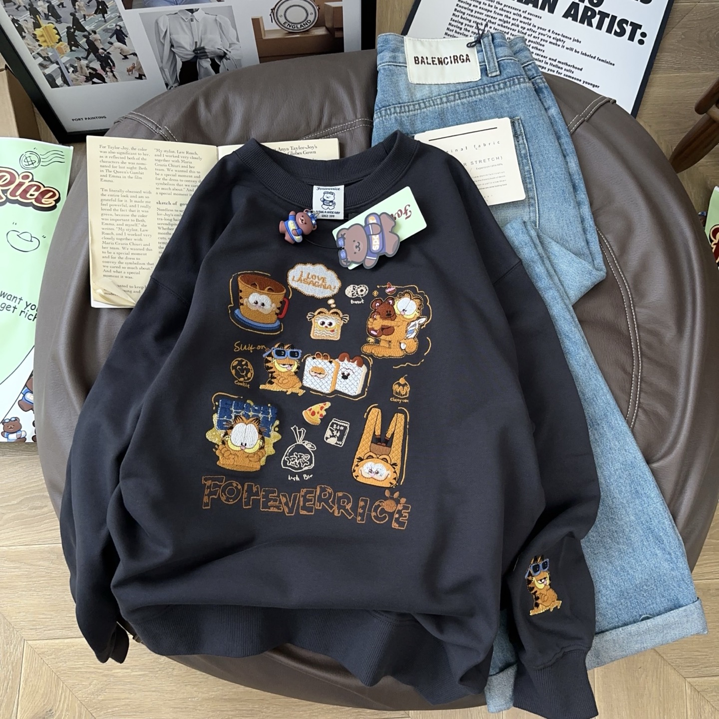 百搭不纠结!Foeverrich纸袋家330g重工刺绣纯棉毛圈卫衣女长袖潮 - bypink