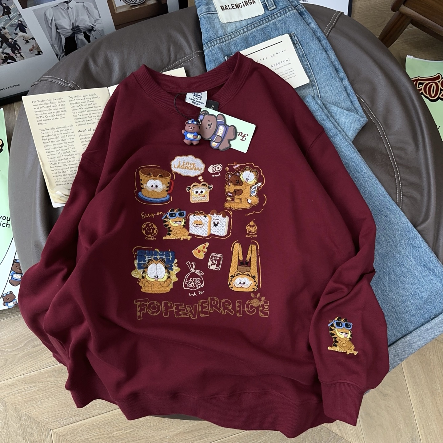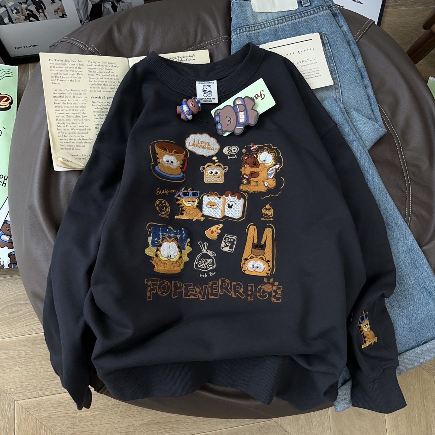 百搭不纠结!Foeverrich纸袋家330g重工刺绣纯棉毛圈卫衣女长袖潮