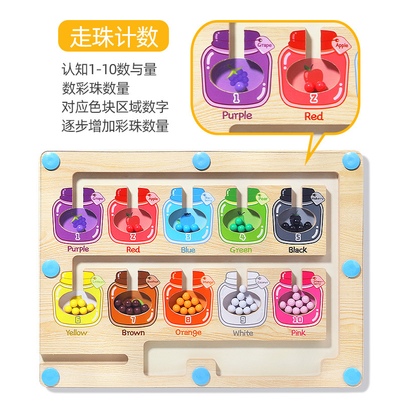 跨境二合一磁性走珠计数板颜色分类游戏儿童早教运笔迷宫训练玩具 - 乖孩子玩具企业店