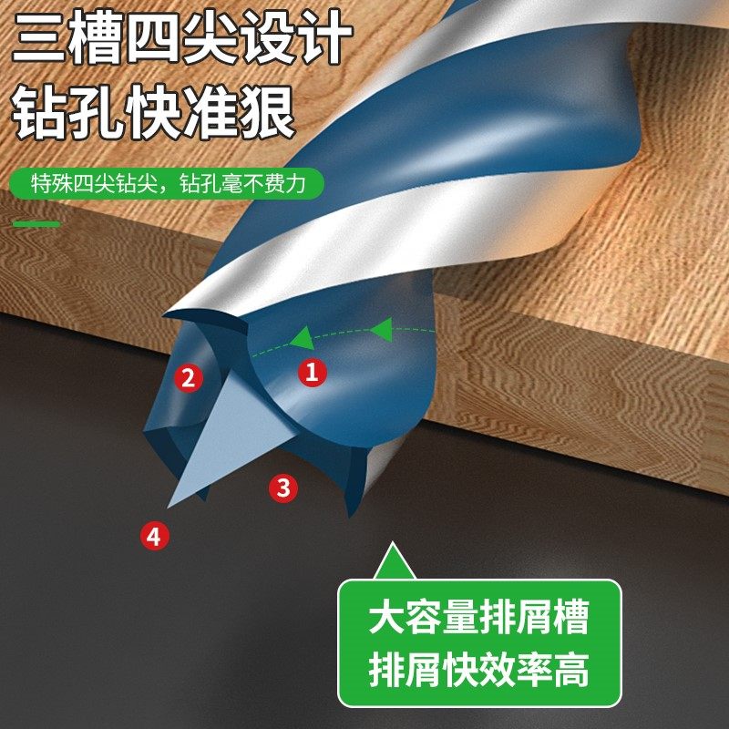 保联木工快速支罗钻四尖木头木板六角柄麻花钻打孔电钻转头开孔器 - 保联旗舰店