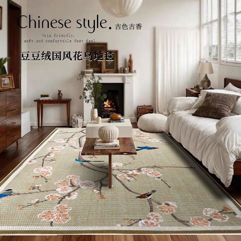 花鸟中古风地毯客厅轻奢高级感立体豆豆绒免M洗大面积满铺卧室地