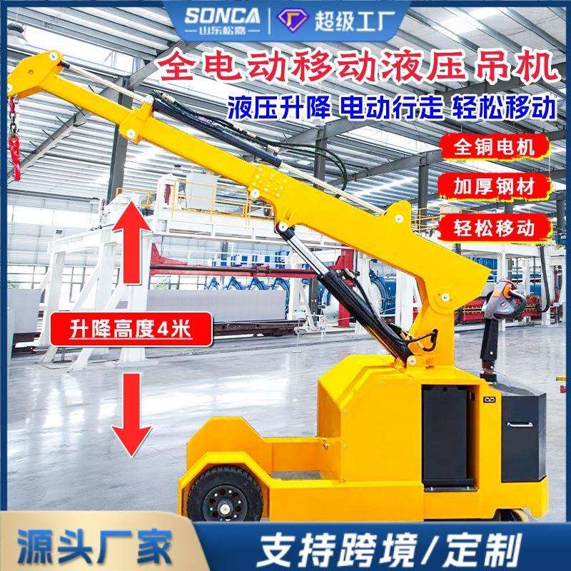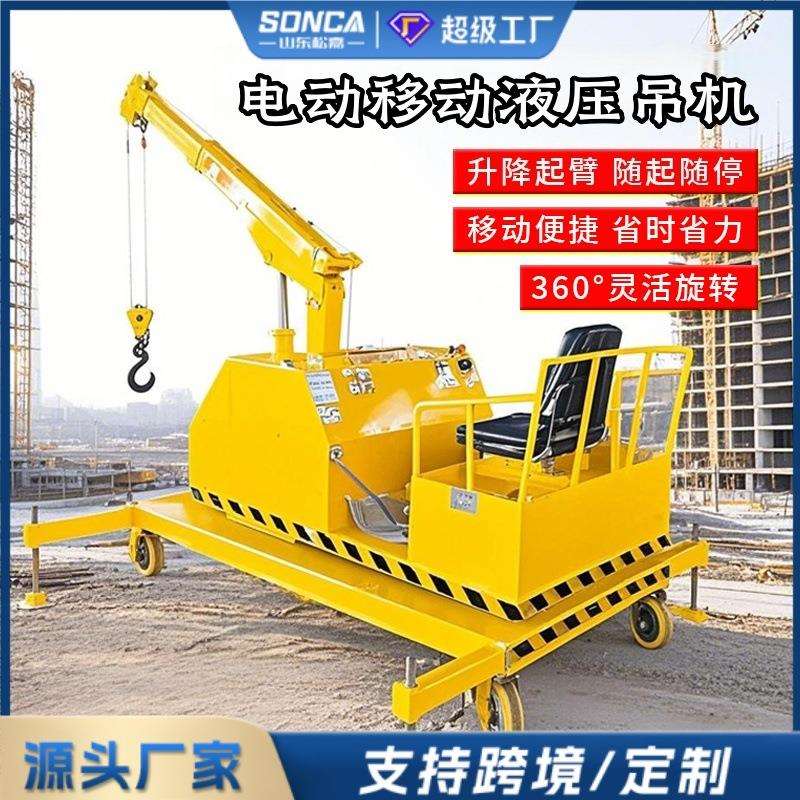 移动小型吊机一吨电动液压悬臂旋转搬运货车载简易升降起重吊机