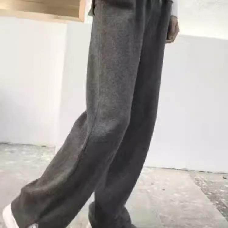 2025秋冬新款精仿羊毛裤女高腰显瘦直筒裤宽松休闲阔腿长裤子
