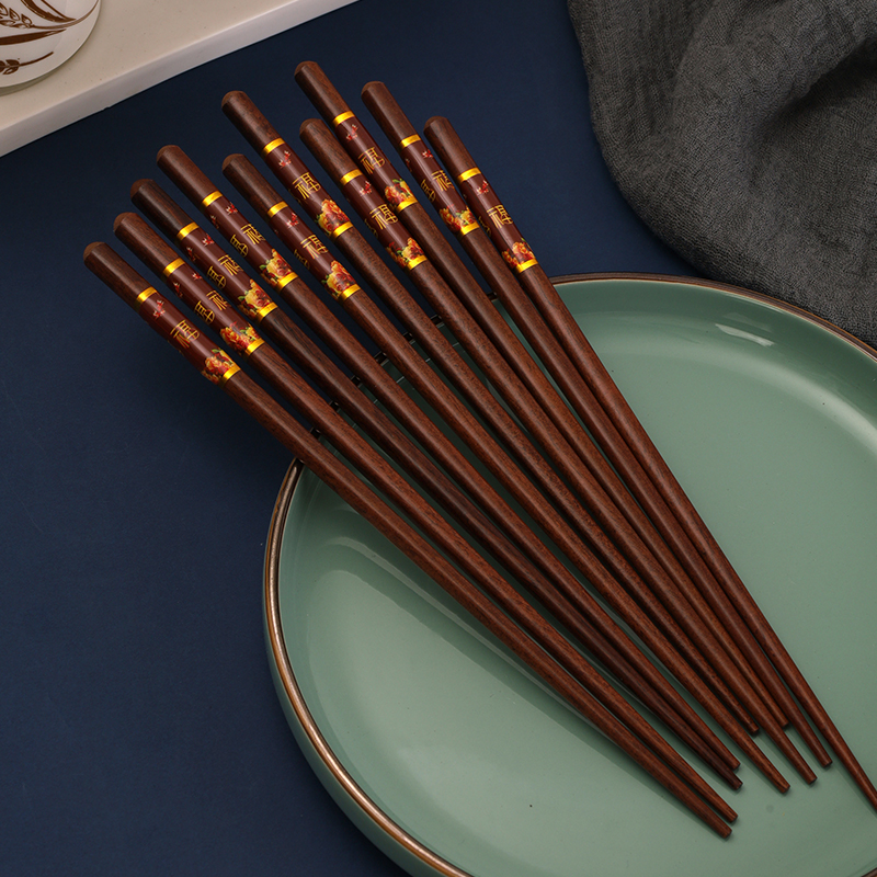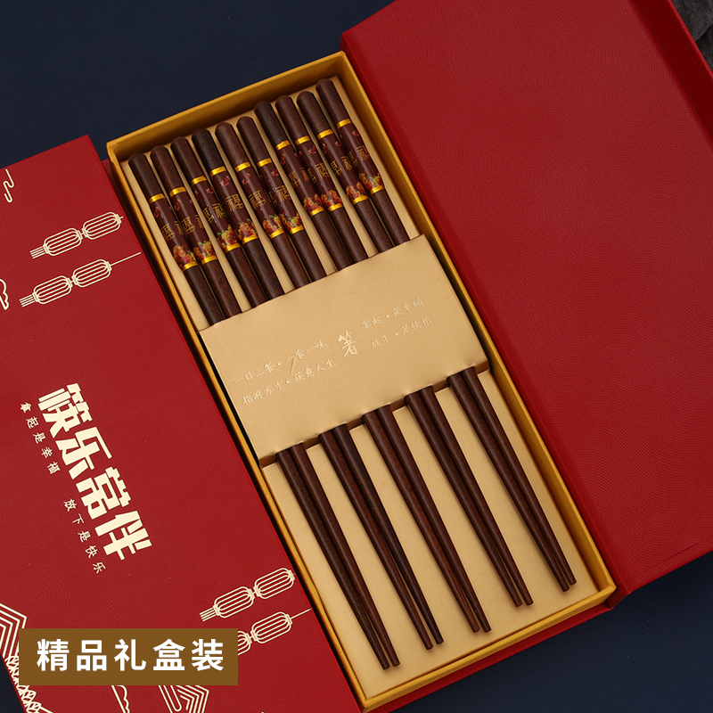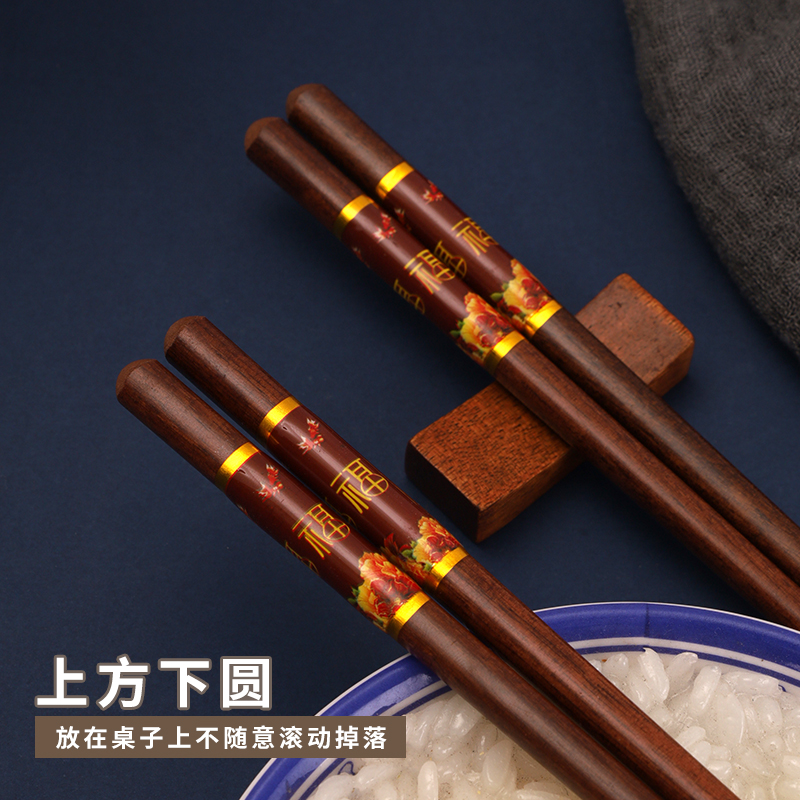 福字红檀木 筷子家用5-10双防滑复古快子天然木制防霉 送人礼盒装 - 小树开花优品