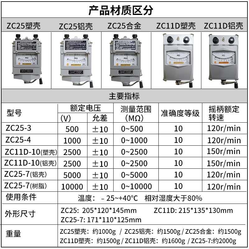 兆欧表 ZC25-3 500V/1000V南京金川绝缘电阻测试仪 铝壳 摇表 - 嘉祥工厂店q
