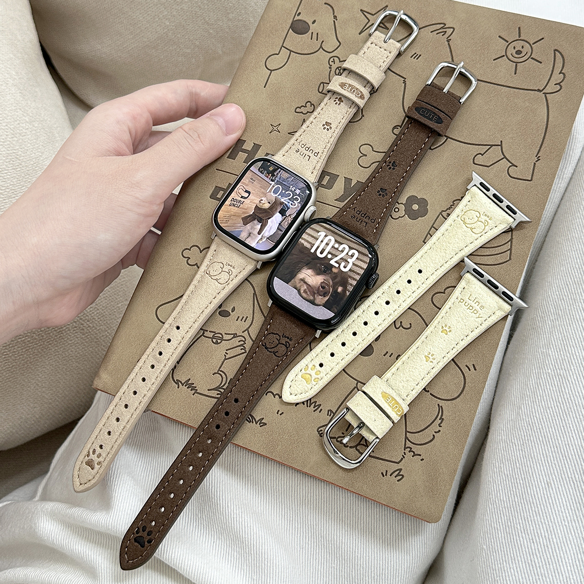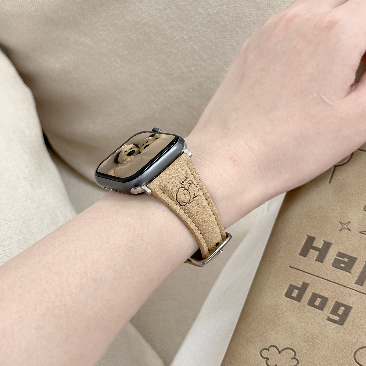 适用iWatchS11卡通小狗翻毛绒皮表带applewatch10/9/8苹果手表秋冬女SE高级ultra印花创意可爱小狗细款皮腕带 - probefit旗舰店