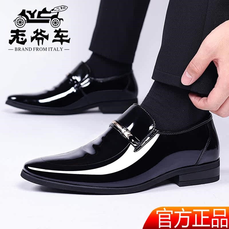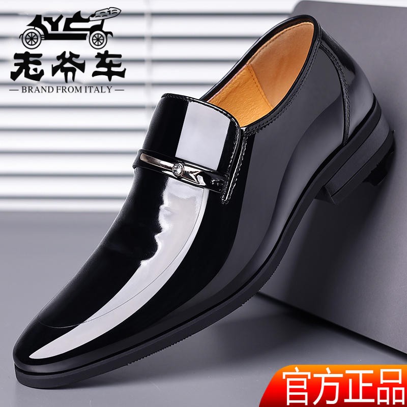 老爷车鞋子真皮男鞋商务正装内增高皮鞋酒红色漆皮一脚蹬尖头皮鞋 - 老爷车皮鞋官方店