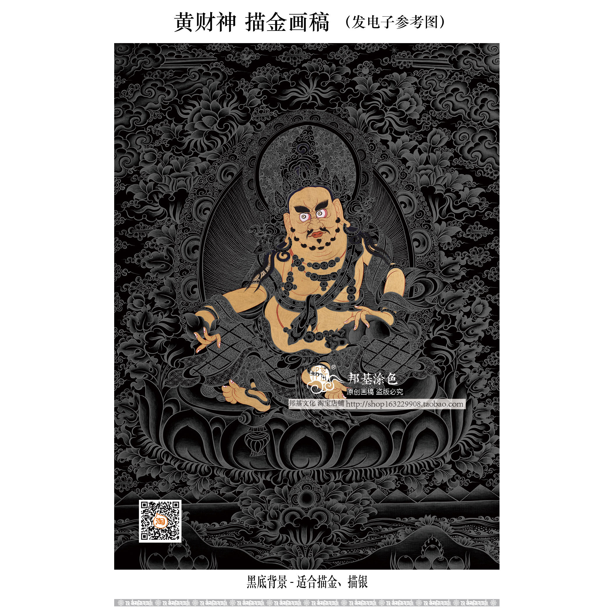 黄财神画稿唐卡DIY手绘描金佛像涂色 自己画唐卡招财装饰画招财 - 邦基文化