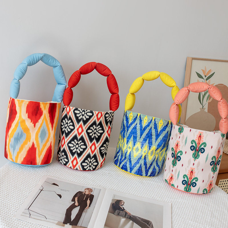 帆布手提袋子高颜值上班族水桶包新款伴手礼艾德小众花纹旅游包包 - 慧编工艺企业店