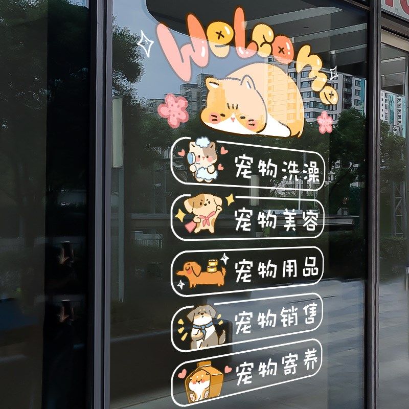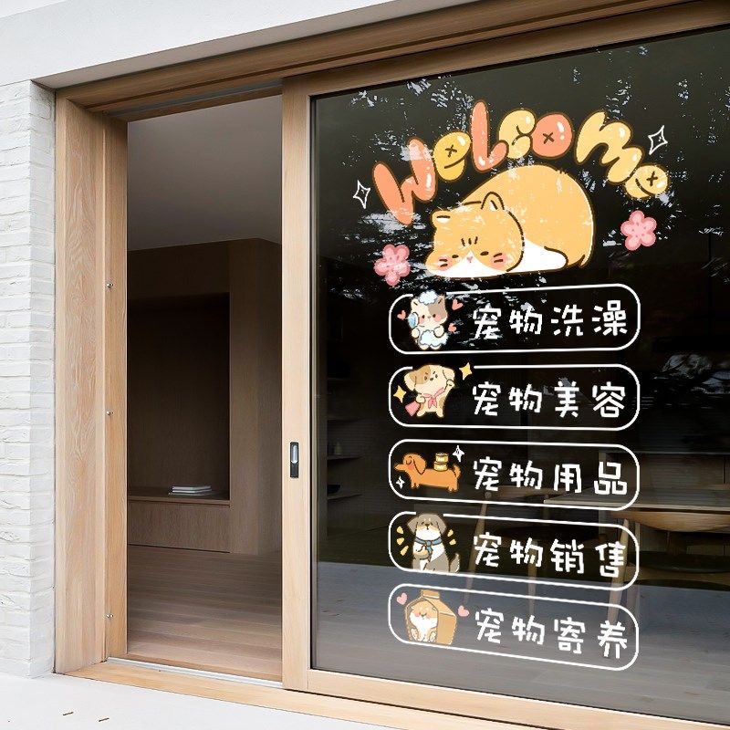 您的位置:他他商城  >  居家  >  宠物店铺装饰玻璃门贴纸萌宠洗澡美容医院生活馆橱窗布置静电贴画