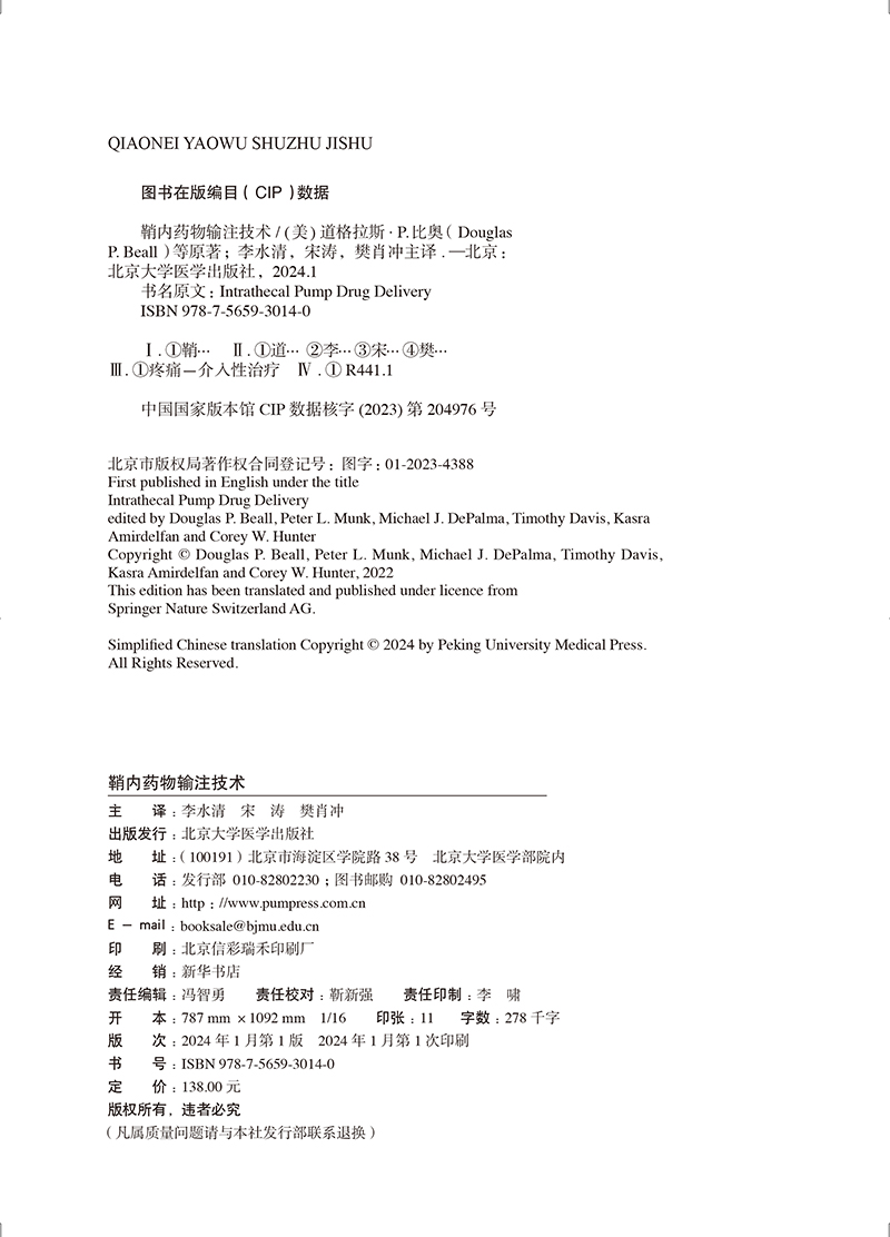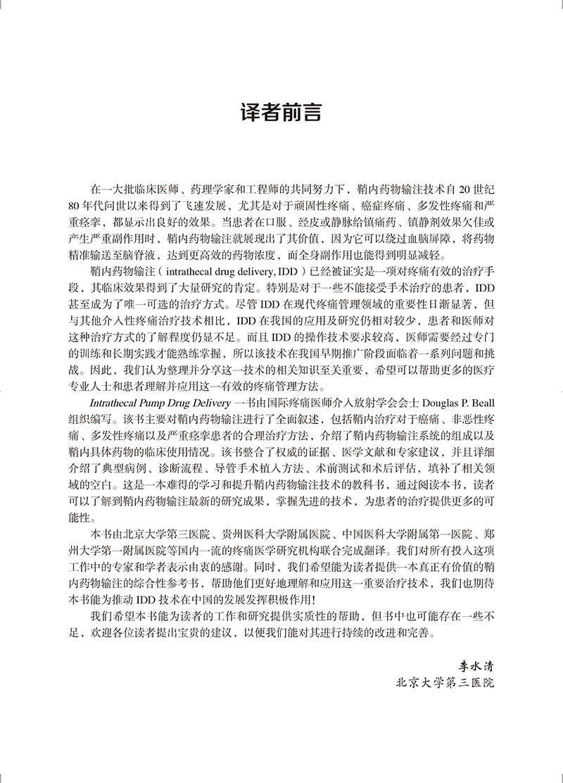 鞘内药物输注技术 供疼痛科放射介入科麻醉科物理治疗师肿瘤科医师等开展鞘内药物输注技术 北京大学医学出版社9787565930140