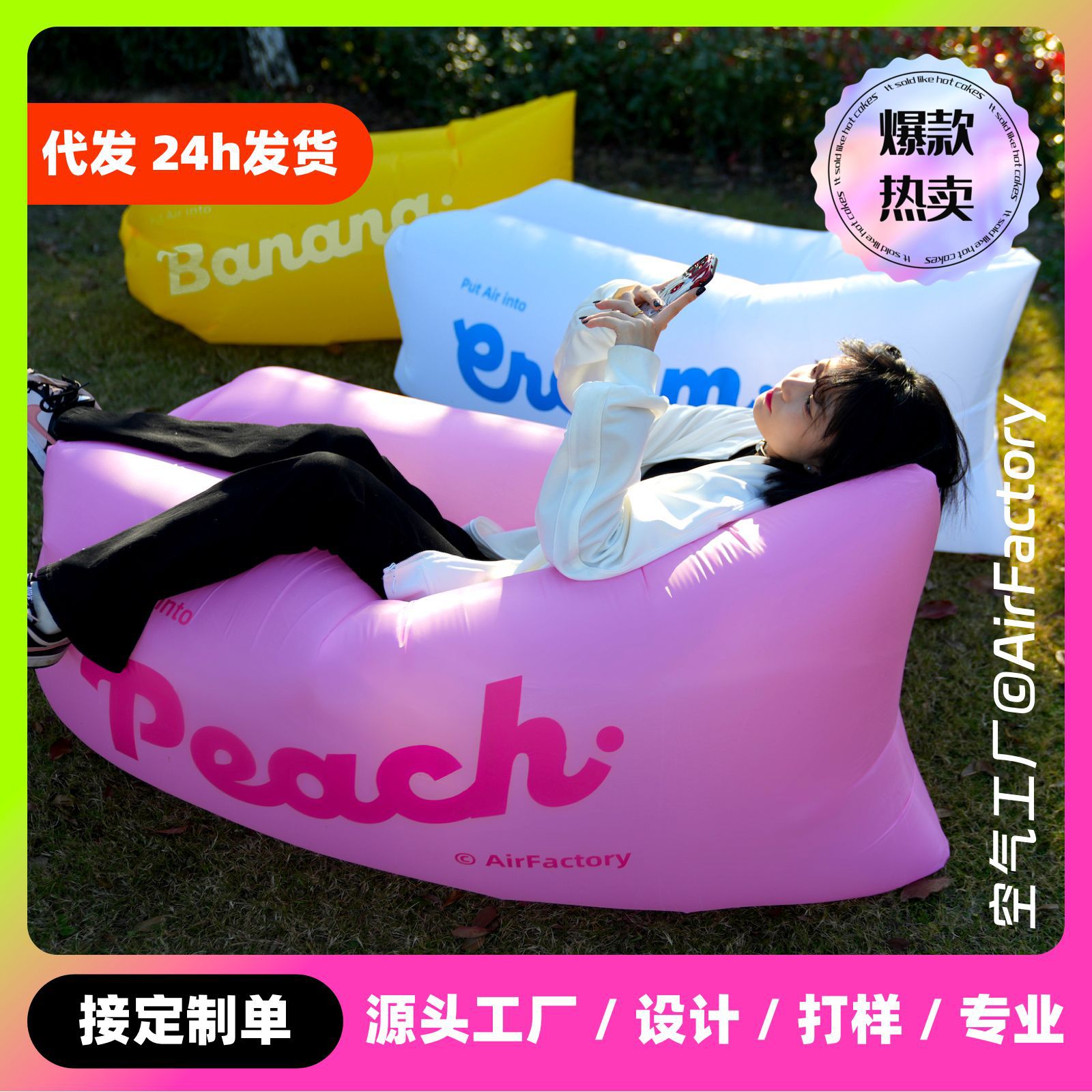 露营充气沙发太阳花户外懒人野餐躺椅便携折叠音乐节气垫床空气凳