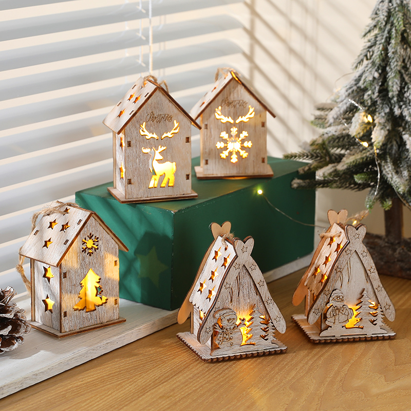 圣诞节装饰品北欧风ins复古原木小房子小木屋圣诞树挂件礼品配饰