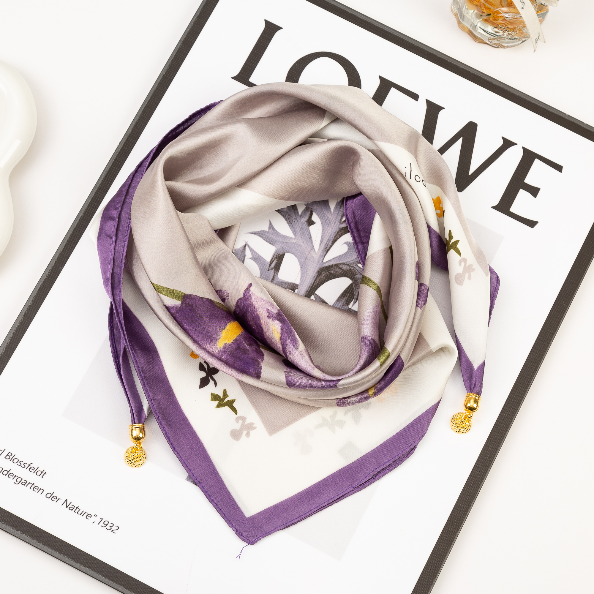 磁吸扣仿真丝方巾新款春秋冬三角围巾丝巾护颈时尚红围脖保暖丝滑 - 南笩女装旗舰店