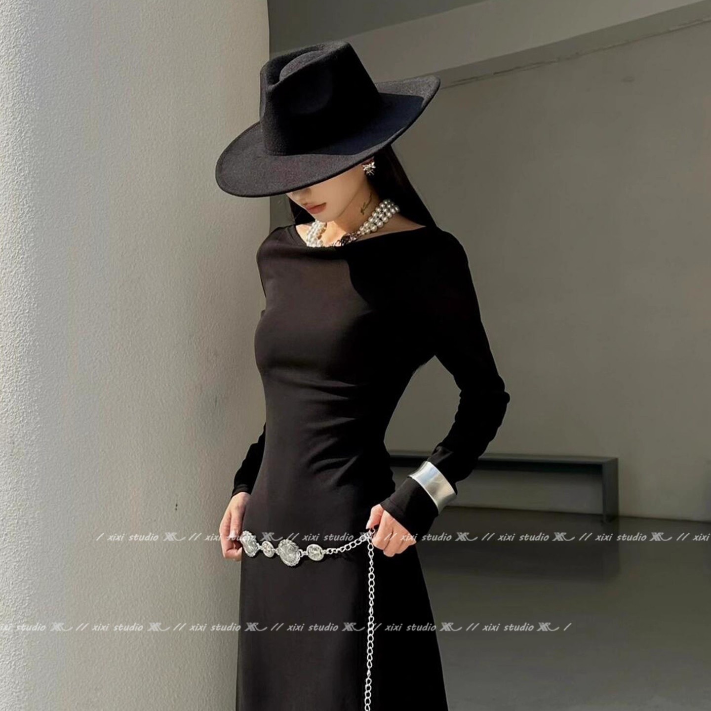 英伦风秋季大檐礼帽设计感优雅毛呢爵士帽新品气质平顶帽子女头饰