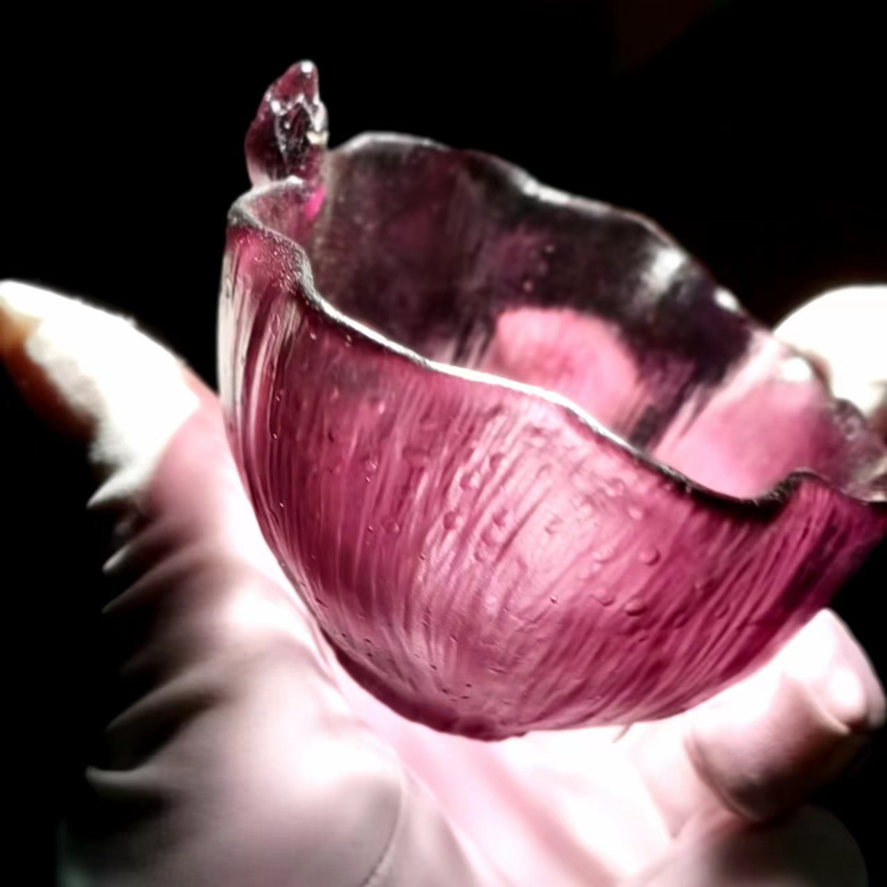 惠古琉璃小荷杯品茗杯主人杯茶具荷花荷叶紫粉水晶矿物茶道茶杯子 - 古法皇家琉璃工艺厂