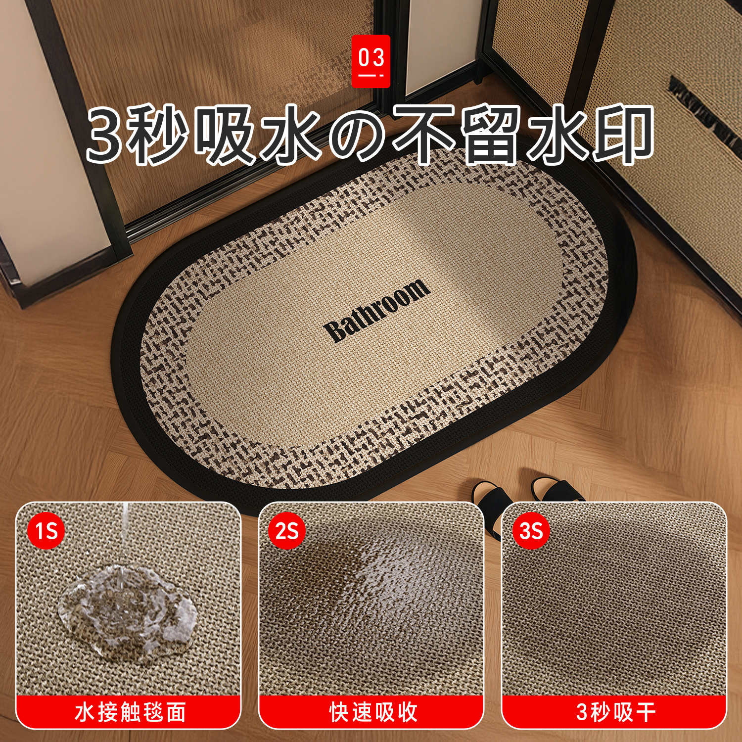 日本浴室防滑垫卫生间厕所洗手间地毯一片式吸水地垫家用脚垫卫浴 - 吱凡旗舰店