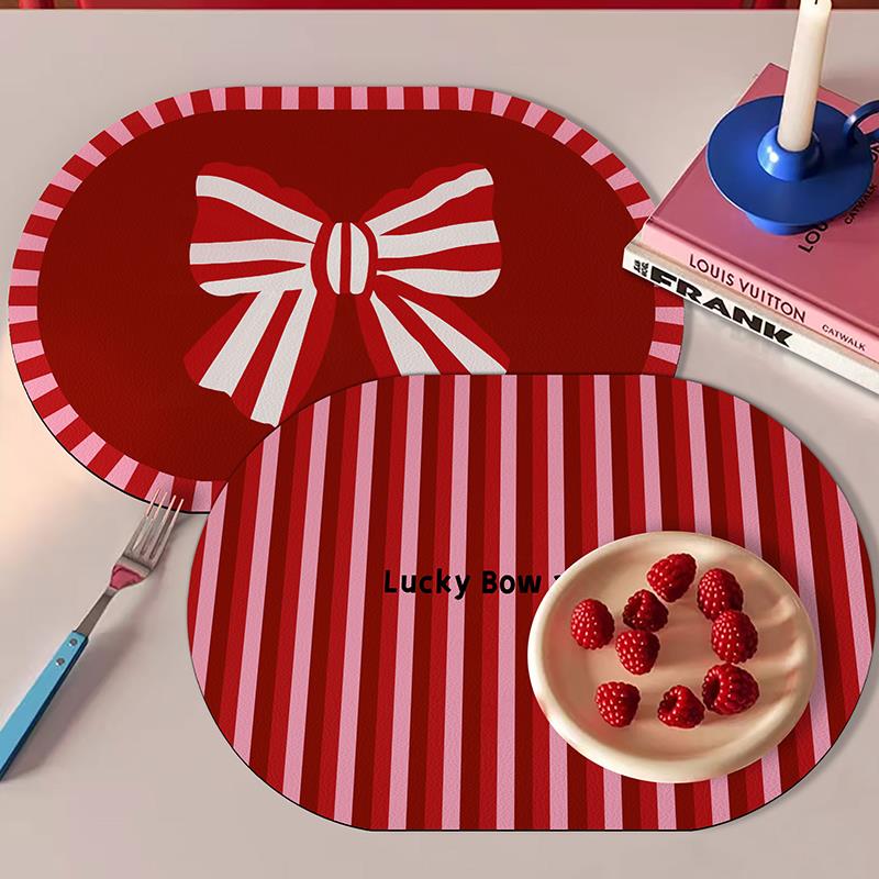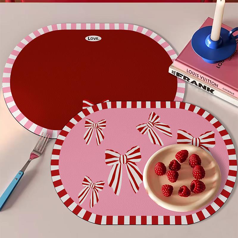 少女心蝴蝶结防水防油皮革餐垫椭圆形隔热防烫桌垫可爱咖啡杯垫 - 珺乐光楹鲤专卖店
