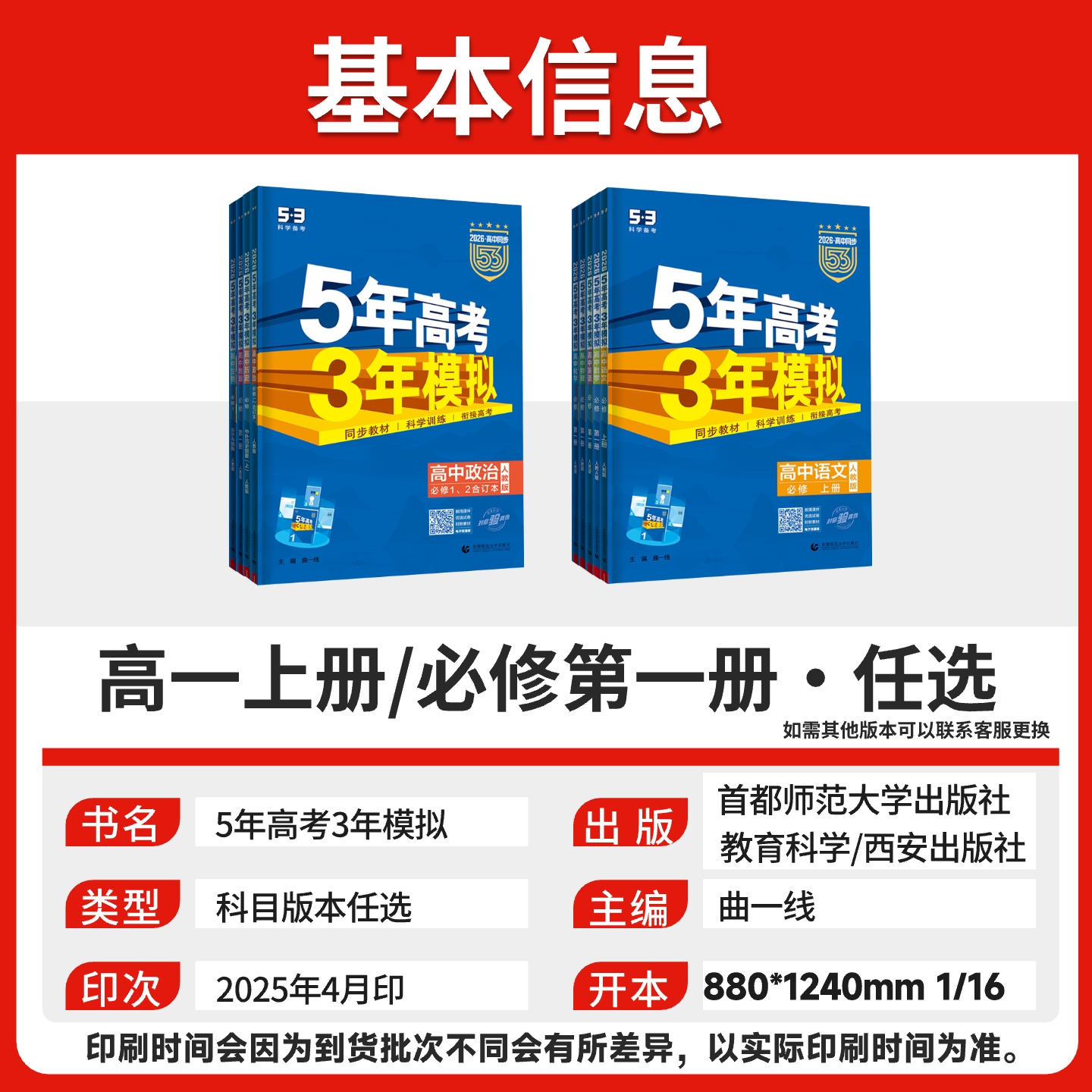 您的位置:他他商城  >   >  2026五年高考三年模拟高一高二数学物理化学英语生物政治地理历史语文必修第一二三四选择性必修上册选修1高中五三53教辅资料书