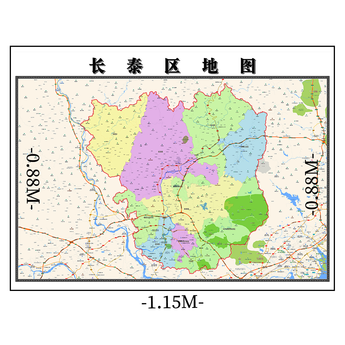 长泰区地图1.15m办公室书房装饰画漳州市区域路线划分高清折叠版 - 捷商家居企业店