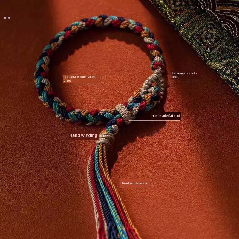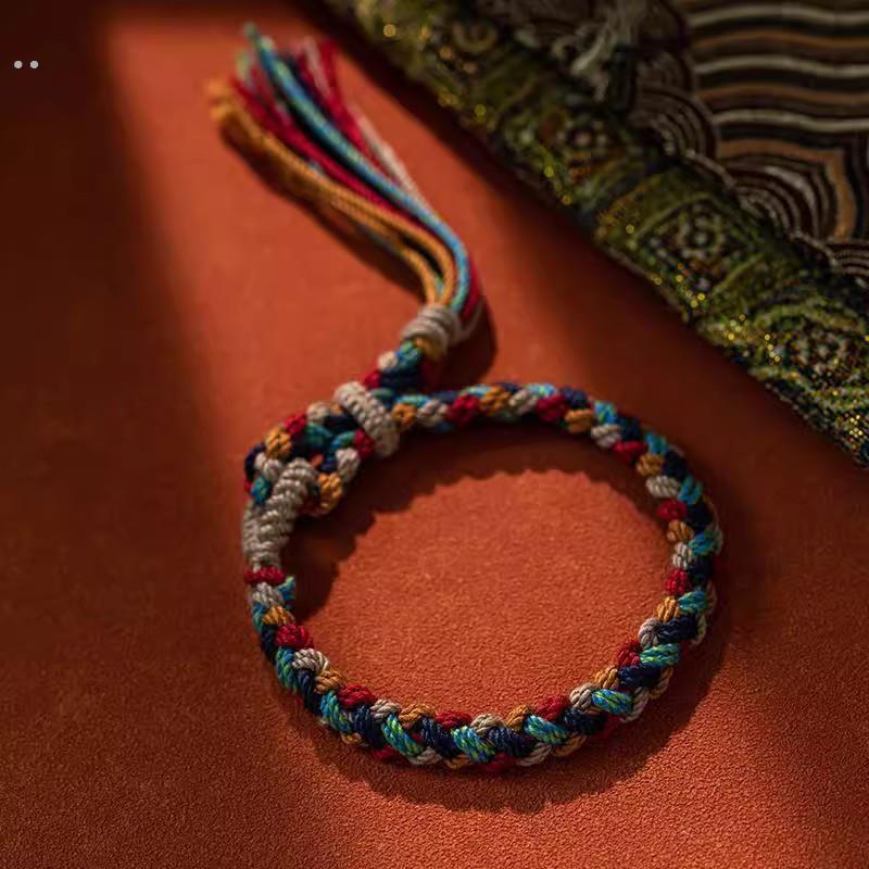藏族手编彩色手绳素绳手卷棉手炼首饰民族风格手炼可调礼品 - 温柔可爱的琳琳