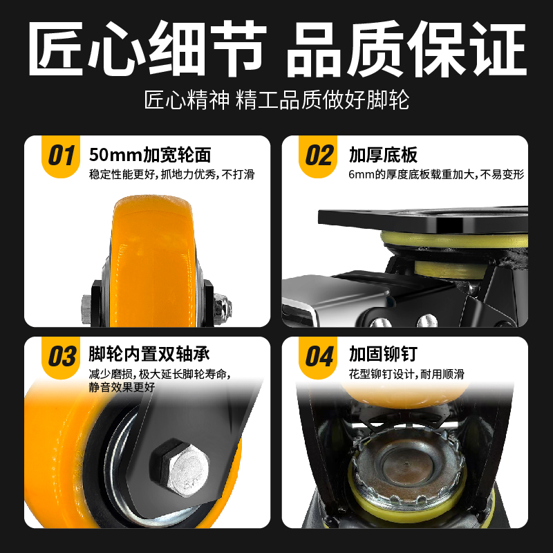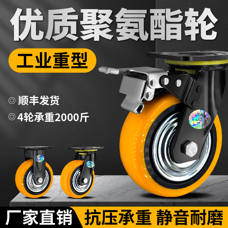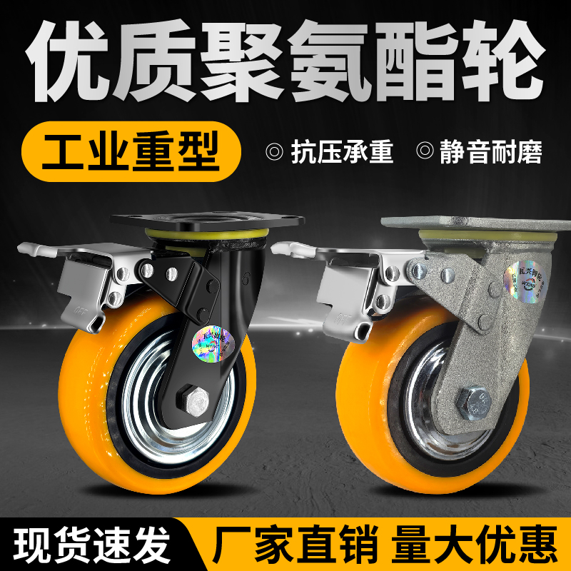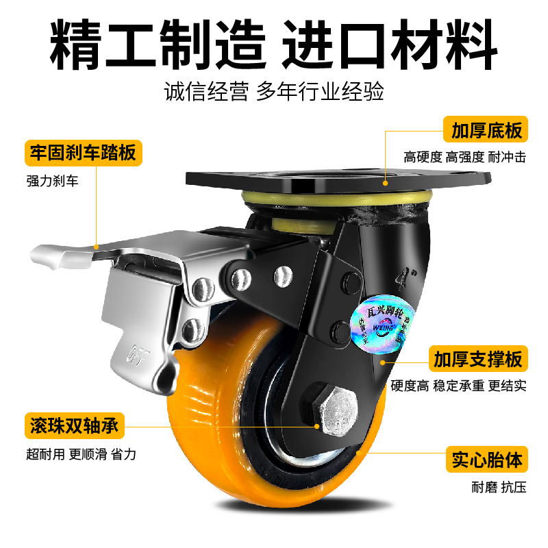 万向轮轮子推车轮承重万向轮刹车静音68寸聚氨酯脚轮转向瓦兴脚轮