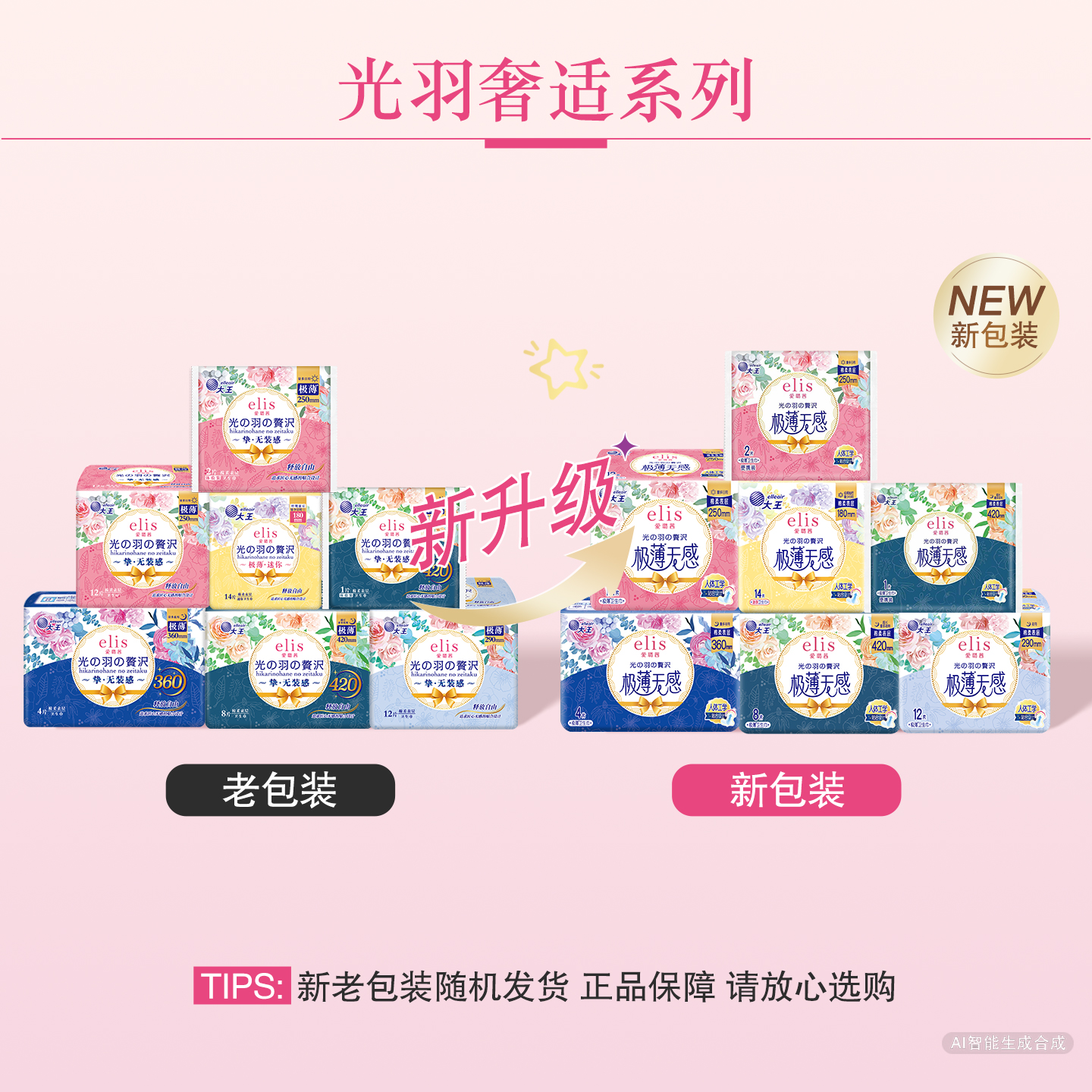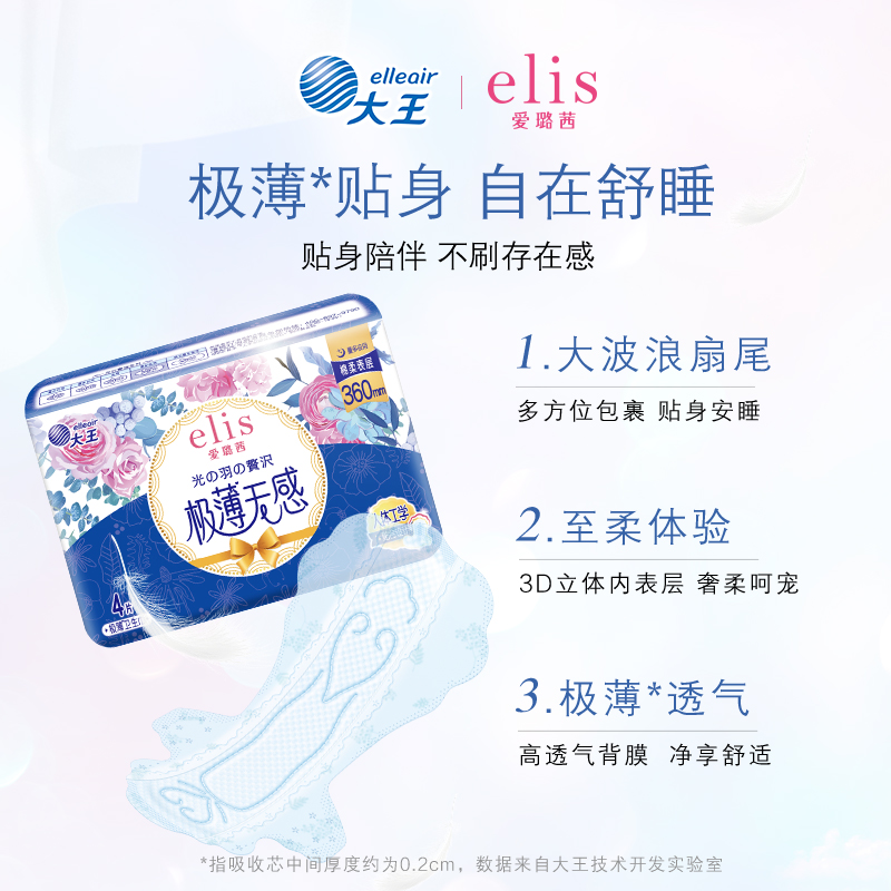大王卫生巾官方旗舰店正品elis爱璐茜光羽极薄夜用姨妈巾组合 - elis爱璐茜旗舰店