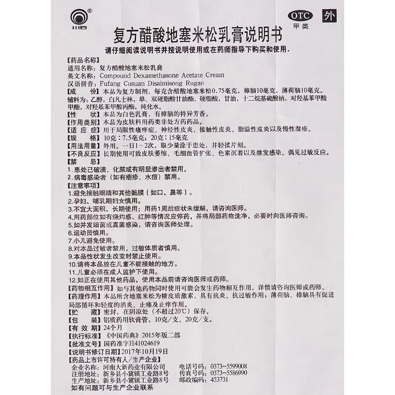 川石复方醋酸地塞米松乳膏局限性瘙痒症神经性皮炎接触性脂溢湿疹