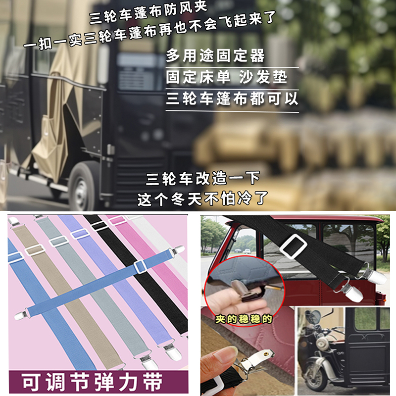您的位置:他他商城  >   >  三轮车防风夹子车雨棚挡风帘固定夹绳电动老年车车篷可调节弹力带
