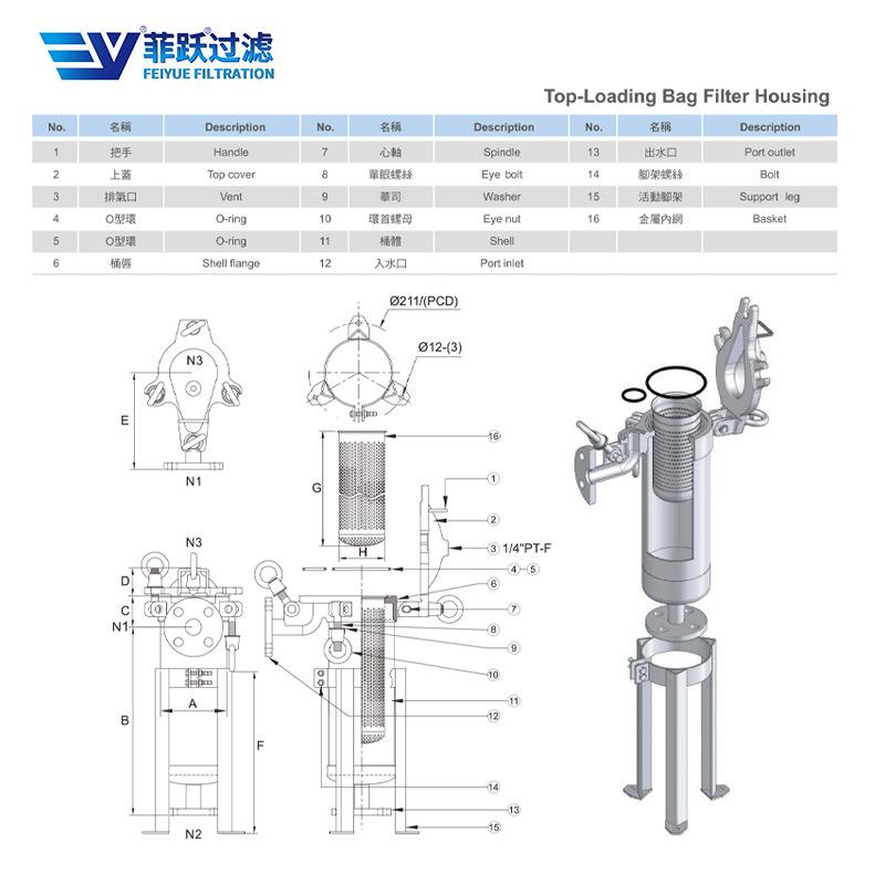 菲跃龟入式袋式过滤器添加剂饮料酒水乳业食品级精密单袋式过滤器