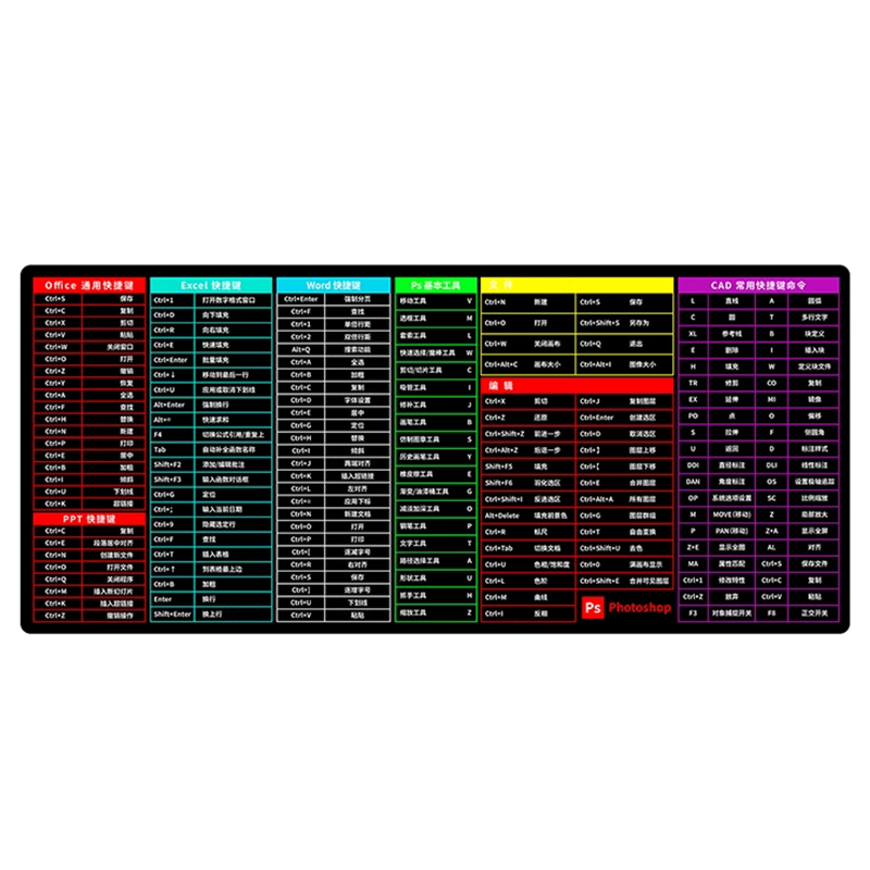 您的位置:他他商城  >  数码  >  超大号鼠标垫办公电脑键盘垫书桌垫ps快捷键大全cad电竞护腕垫子