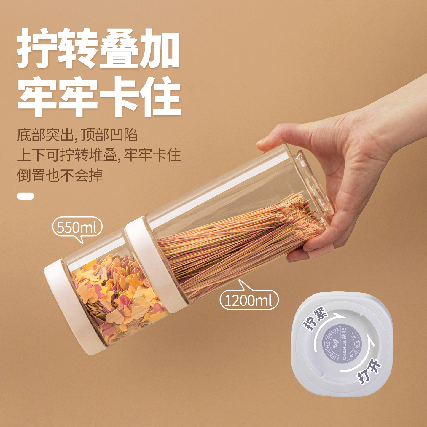 茶花塑料密封罐五谷杂粮面条厨房储物罐密封盒家用收纳罐透明罐子 - 茶花品牌百货用品