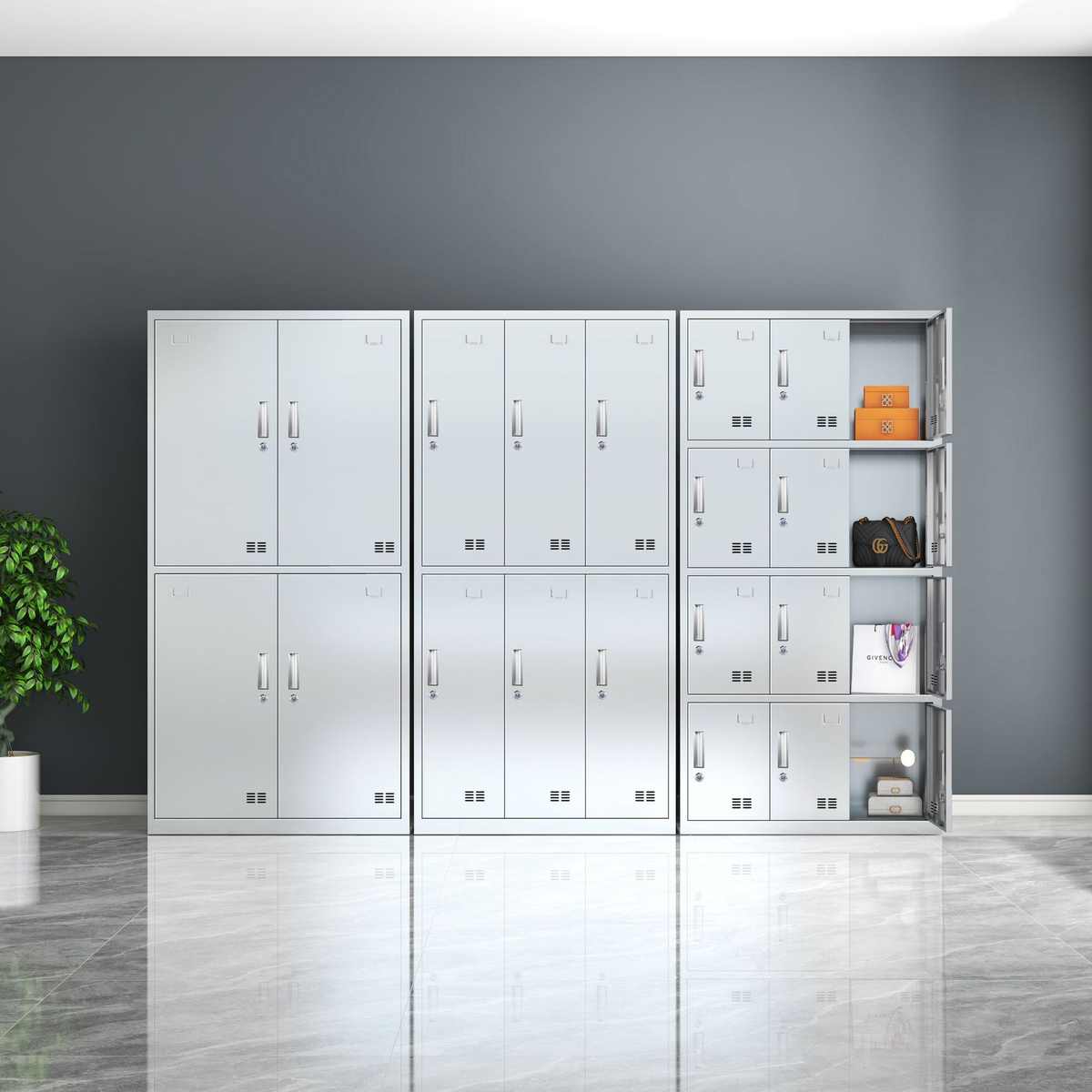 不锈钢更衣柜四门六门九门带锁换衣柜宿舍无尘车间员工多格储物柜 - 欣汇美商贸工厂店
