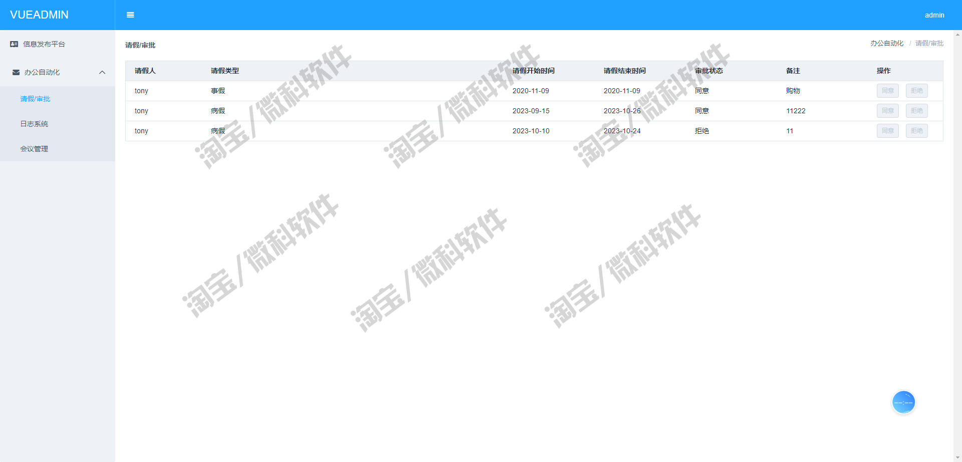SSM+VUE办公OA管理系统javaweb经理员工请假审批会议jsp源码mysql - 微科软件