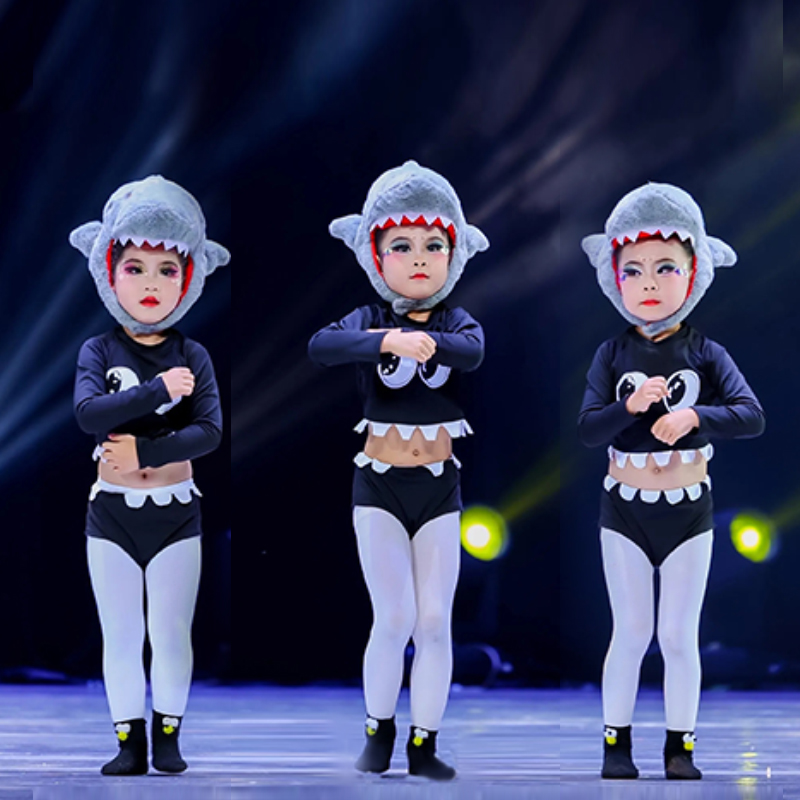 鲨鱼来啦宝宝儿童演出服珍妮舞蹈表演服小动物鲨鱼头套帽子服装 - 翰鼎舞蹈服饰