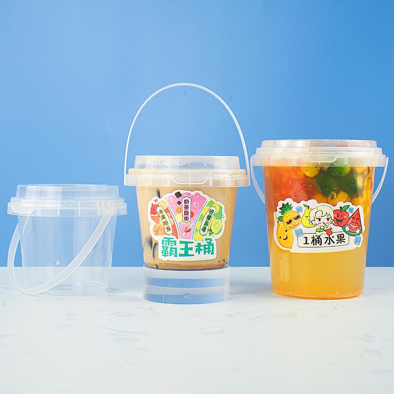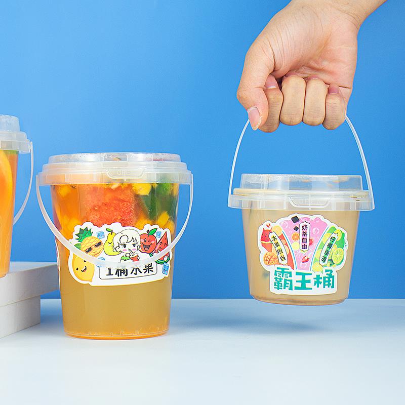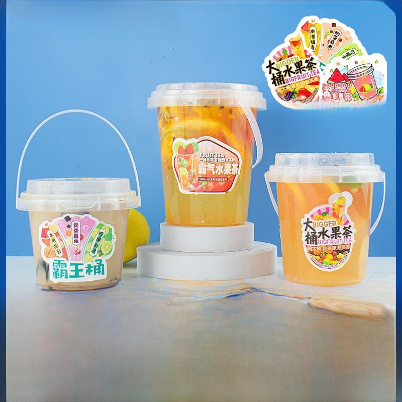 网红果茶桶500/700/1000ml大袋奶茶霸王桶杯一次性广告