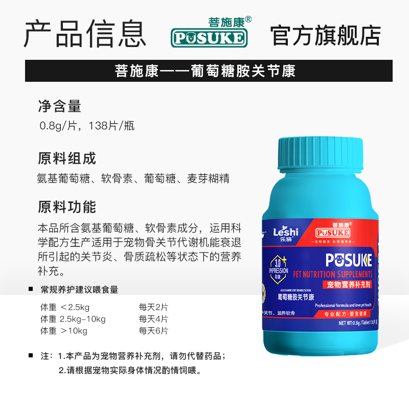 菩施康乐施葡萄糖胺关节康片狗猫软骨素专用关节腿瘸疼痛营养补充 - 菩施康宠物用品旗舰店