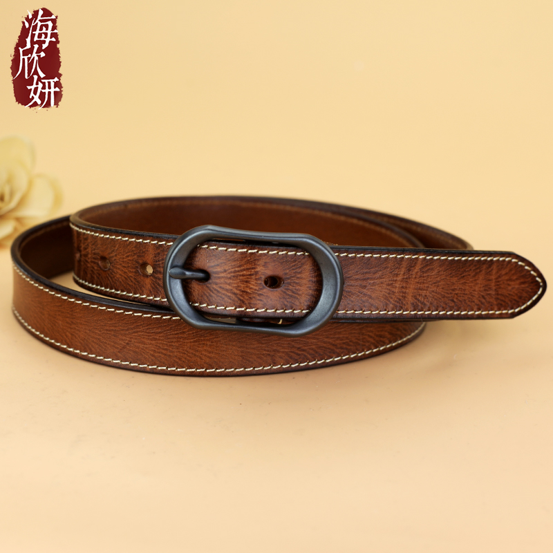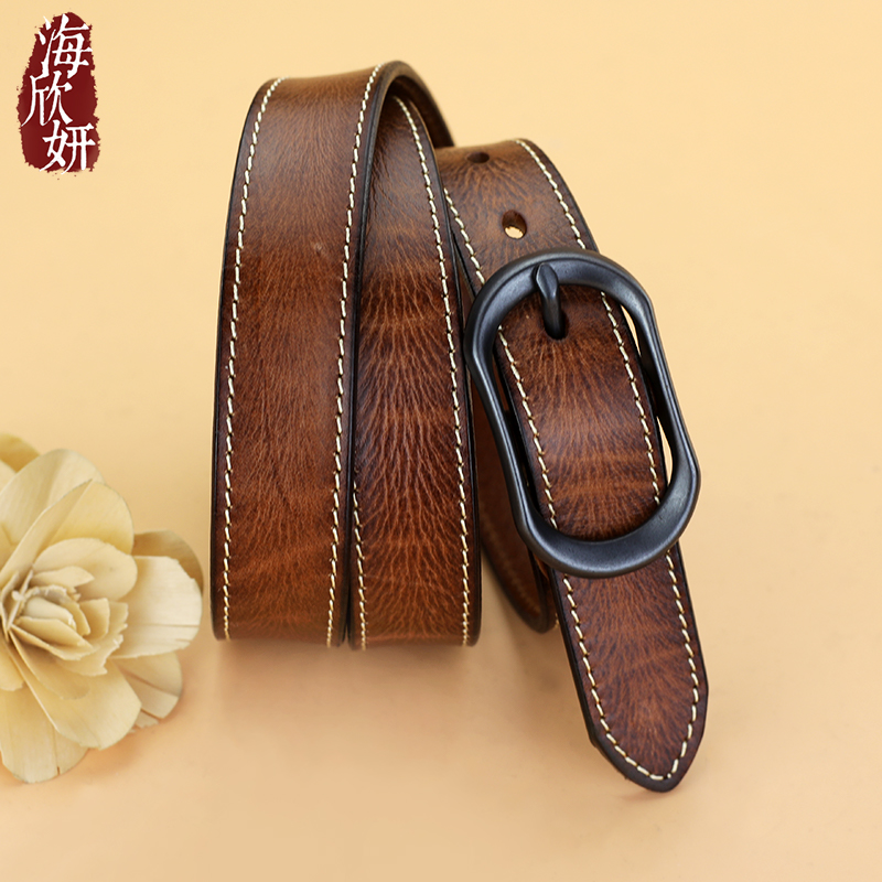 皮带女真皮头层牛皮棕色高级感宽腰带时尚百搭装饰配裙子牛仔裤带 - 海欣妍旗舰店