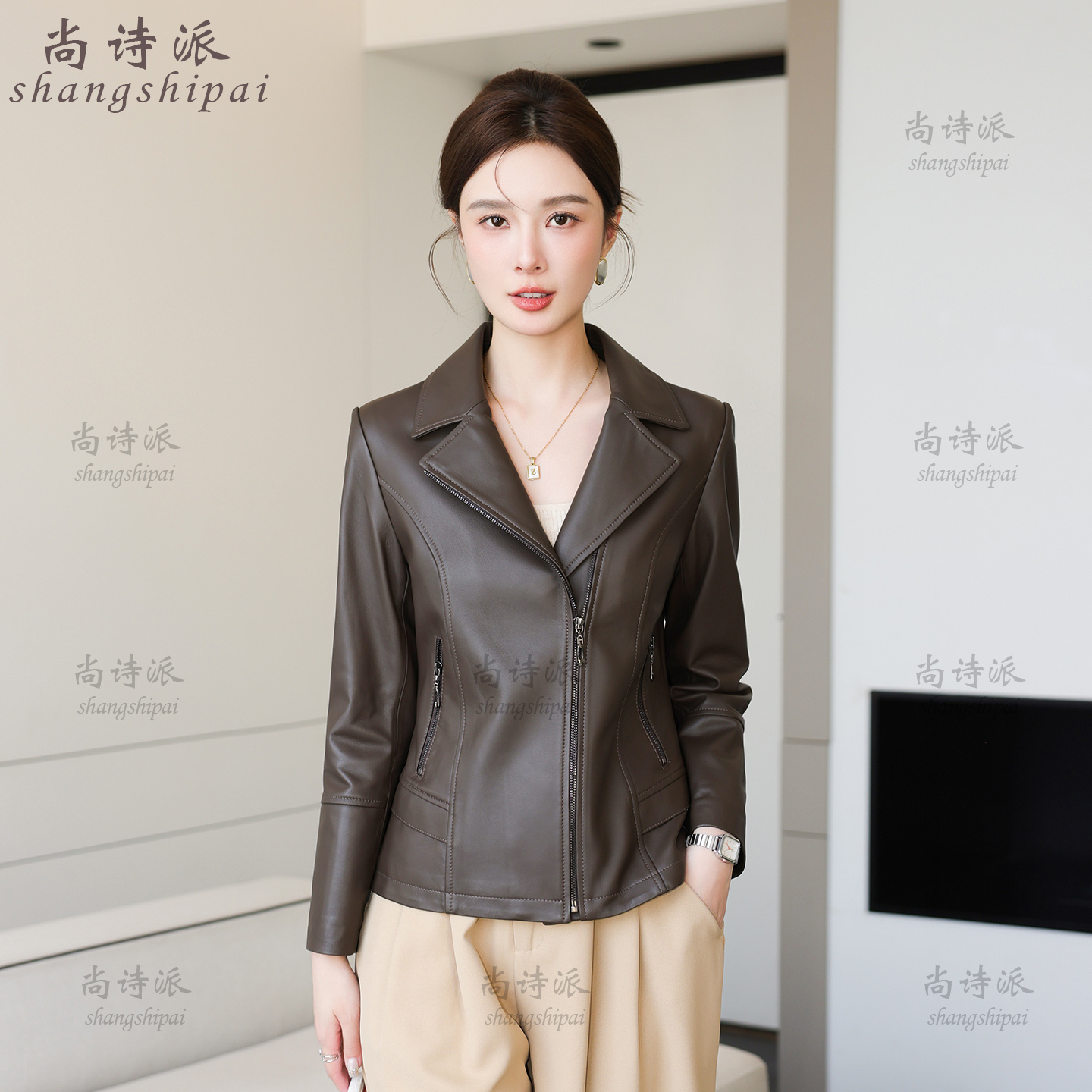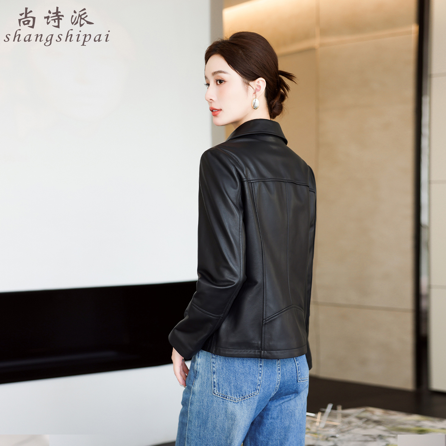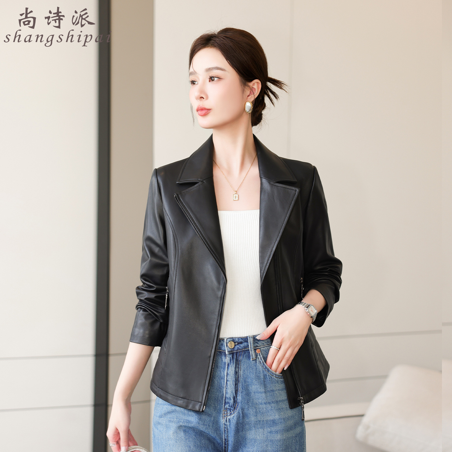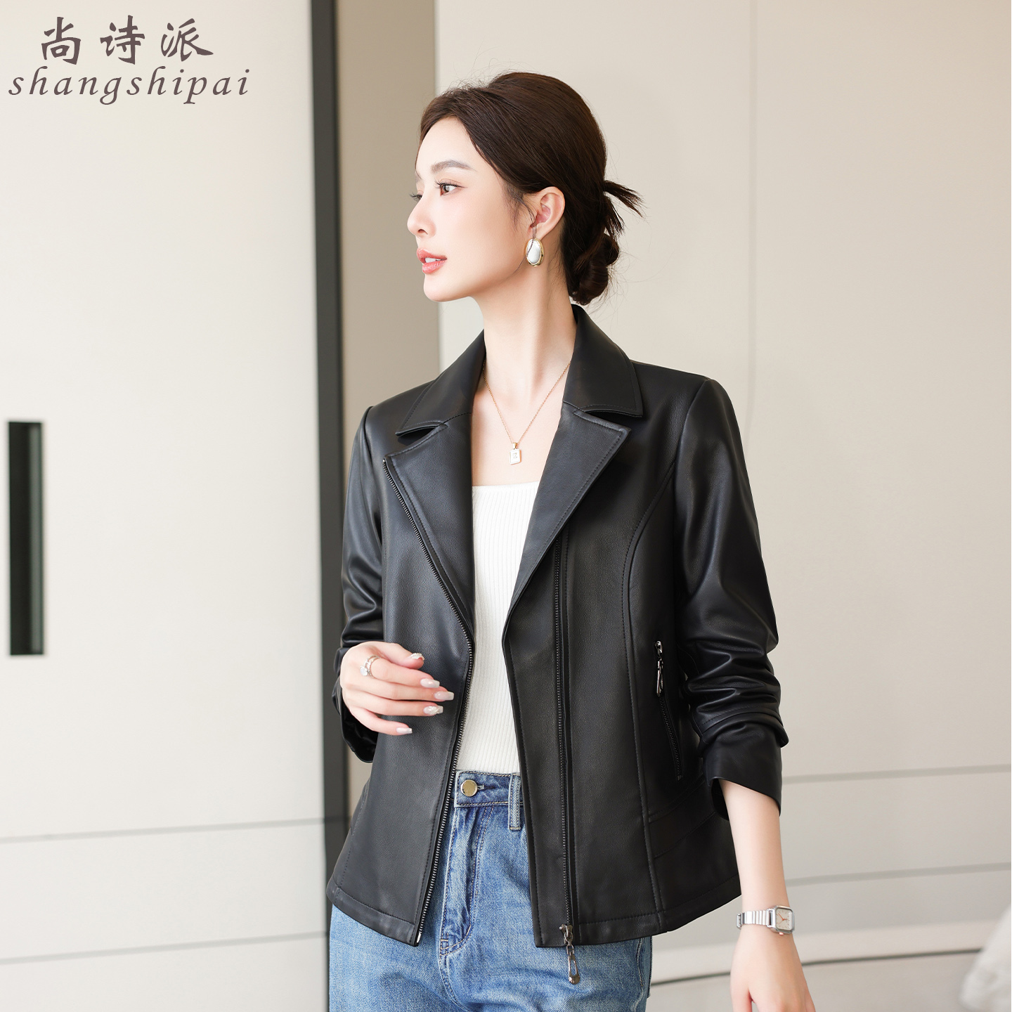 海宁真皮皮衣女短款2025春秋新款头层绵羊皮小个子西装领修身外套 - 尚诗派皮草旗舰店