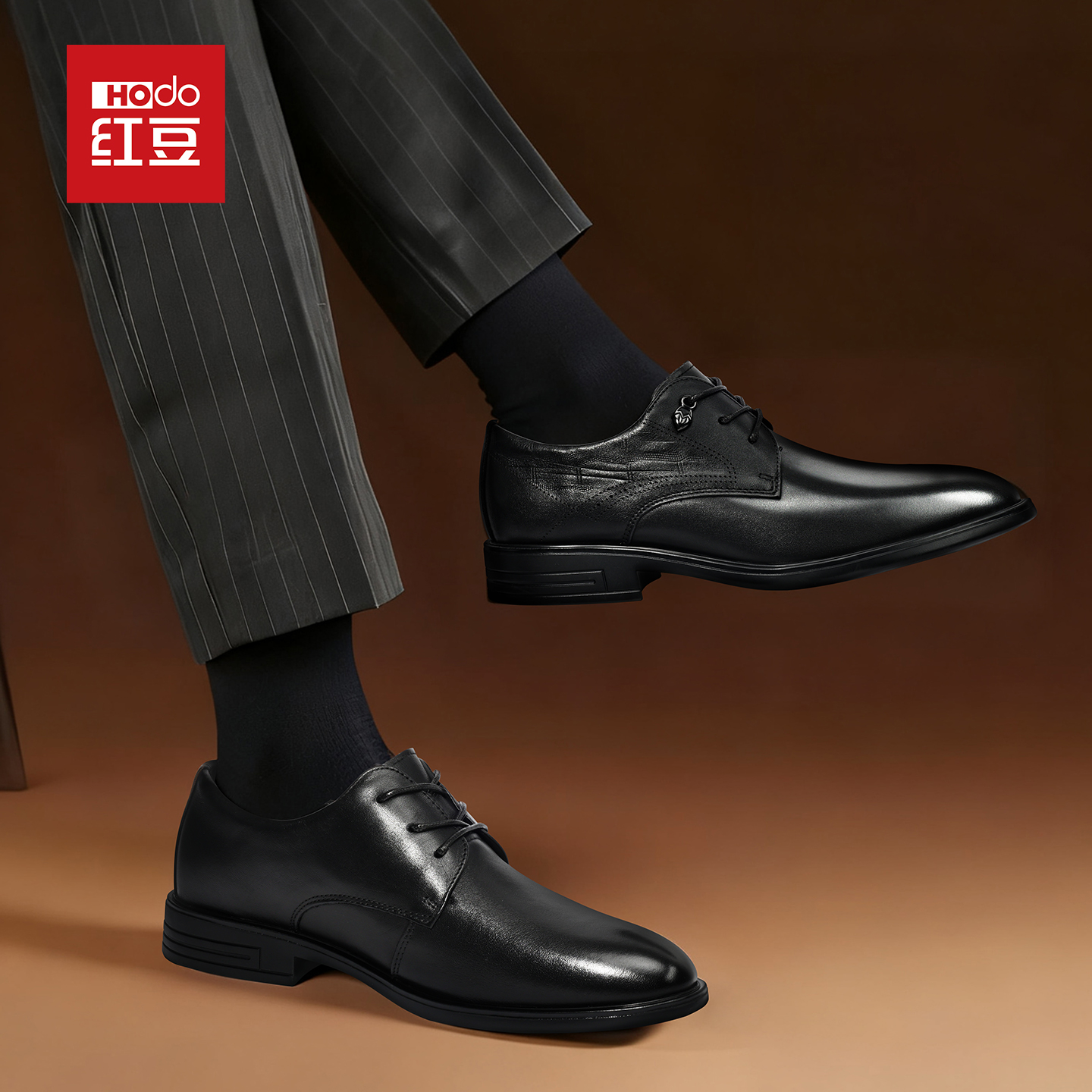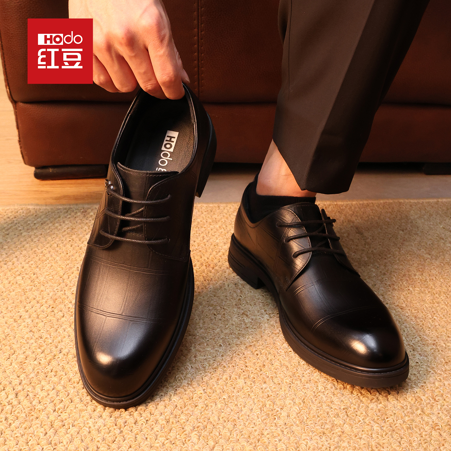 红豆皮鞋男结婚真皮正装商务德比鞋2025年新款舒适时尚英伦新郎鞋 - 红豆鞋类旗舰店