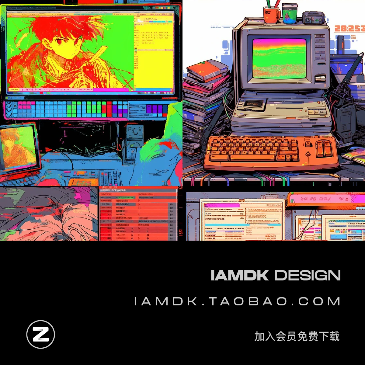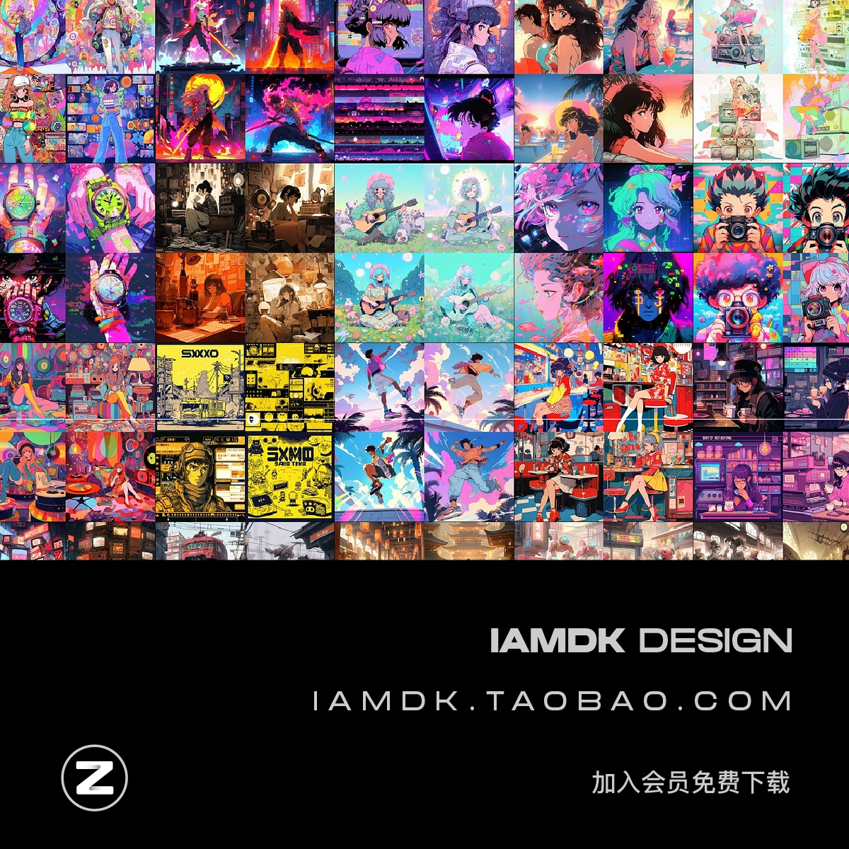 343款AI智能mj生成复古动漫漫画电脑手机壁纸图片/关键词代码咒语 - 早道大咖素材 IAMDK DESIGN
