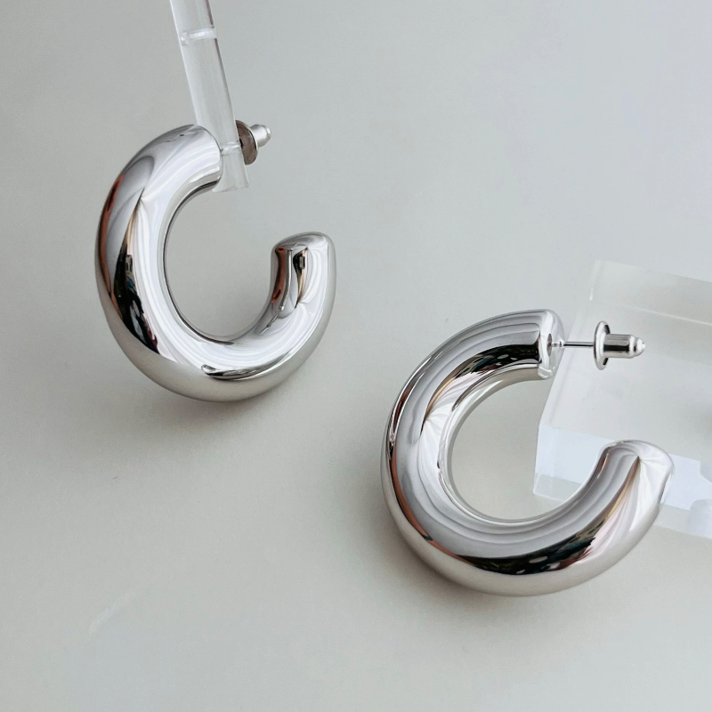 WZ&SILVER设计师款S925纯银镀铑金小胖子C型耳饰高级时尚百搭