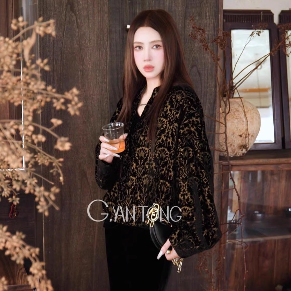 Gyantong郭彦彤百分百桑蚕丝丝绒重工外套秋款轻奢高级WT1049 - 郭彦彤 高端原创设计女装