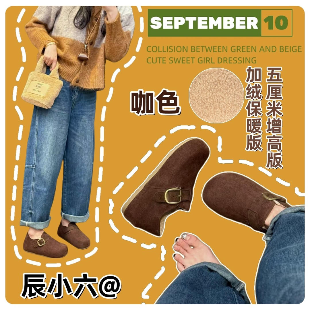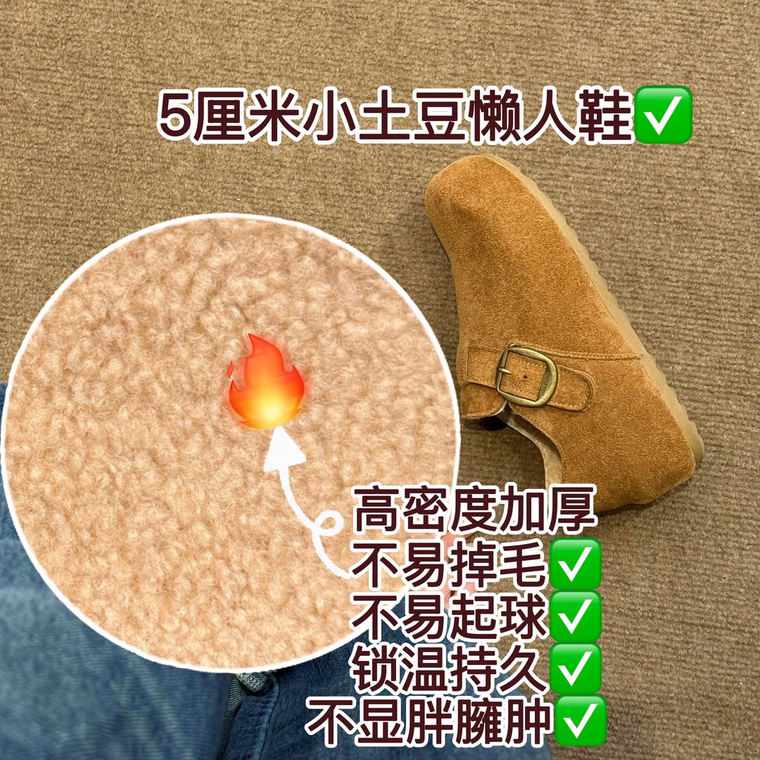 辰小六【5厘米羊羔绒勃肯 】不打滑不掉跟扣带复古小土豆勃肯鞋