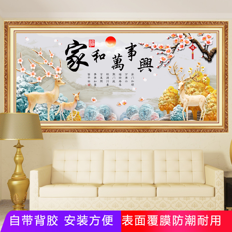 发财树客厅装饰画自粘贴画沙发背景墙挂画家和万事兴卧室床头画