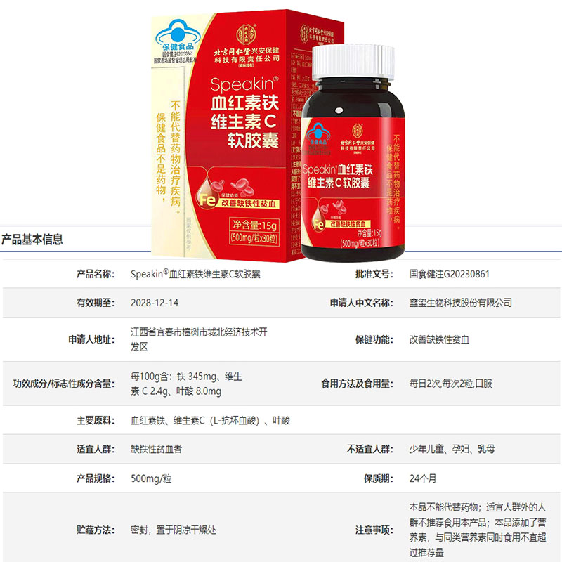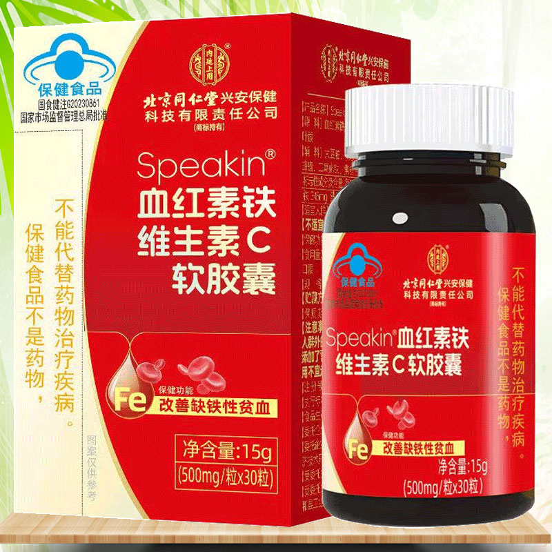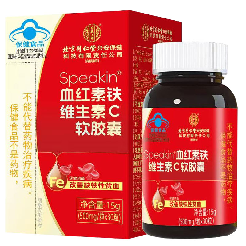 北京同仁堂Speakin血红素铁维生素C软胶囊30粒成人改善缺铁性贫血 - 赢之春保健用品专营店