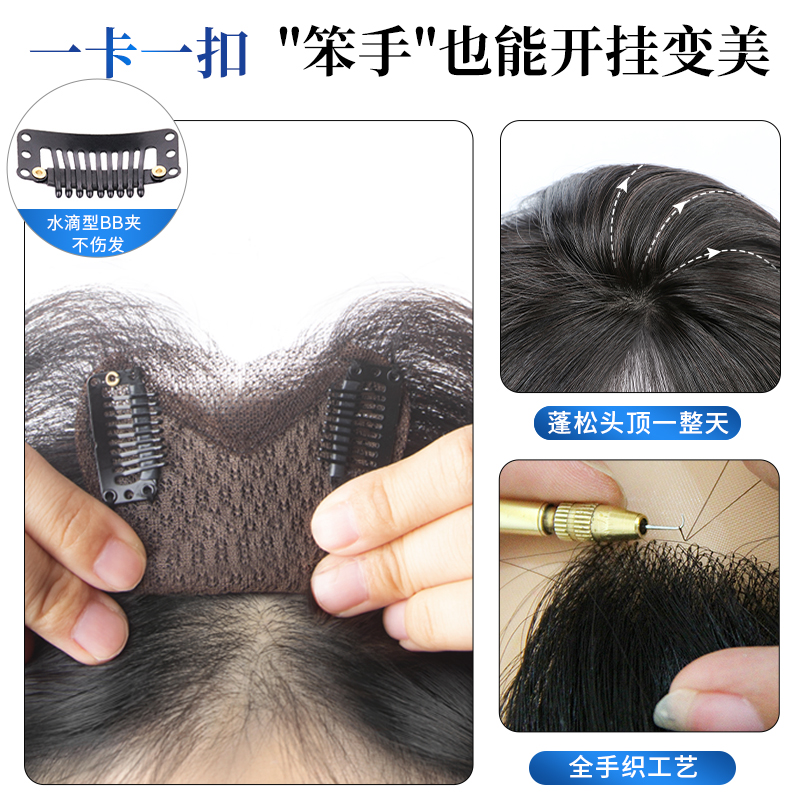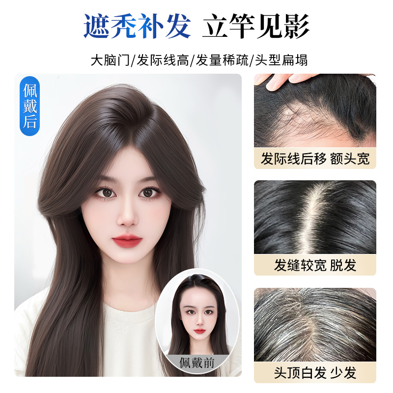 假发女片头顶增发量补发蓬松真发高颅顶八字刘海无痕遮白发假发片 - 乐甜旗舰店
