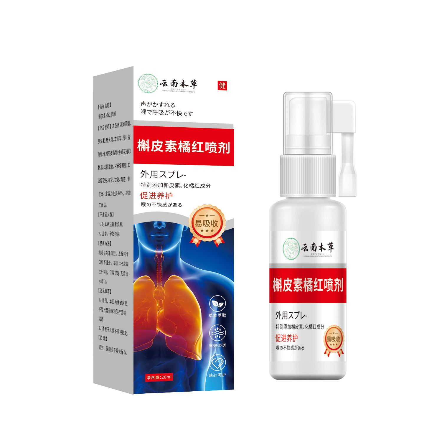 云南本草槲皮素橘红喷剂【天猫正品】咳嗽咽喉不适咯痰草本喷雾剂 - 晟嬉旗舰店