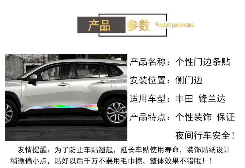 您的位置:他他商城  >  文体  >  专用于丰田锋兰达改装车身拉花车贴纸车门边条装饰个性遮盖划痕贴